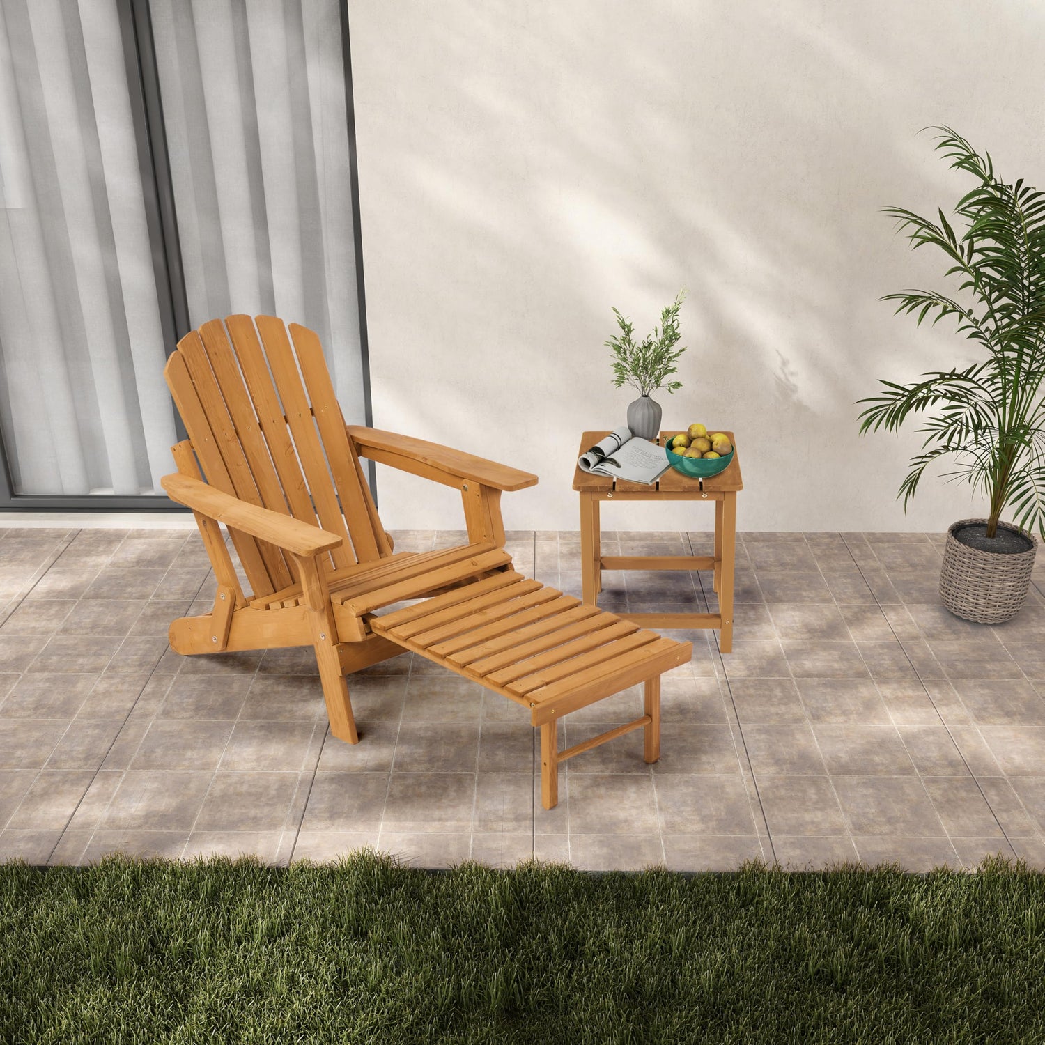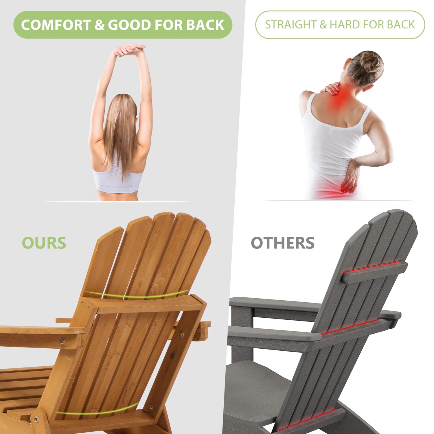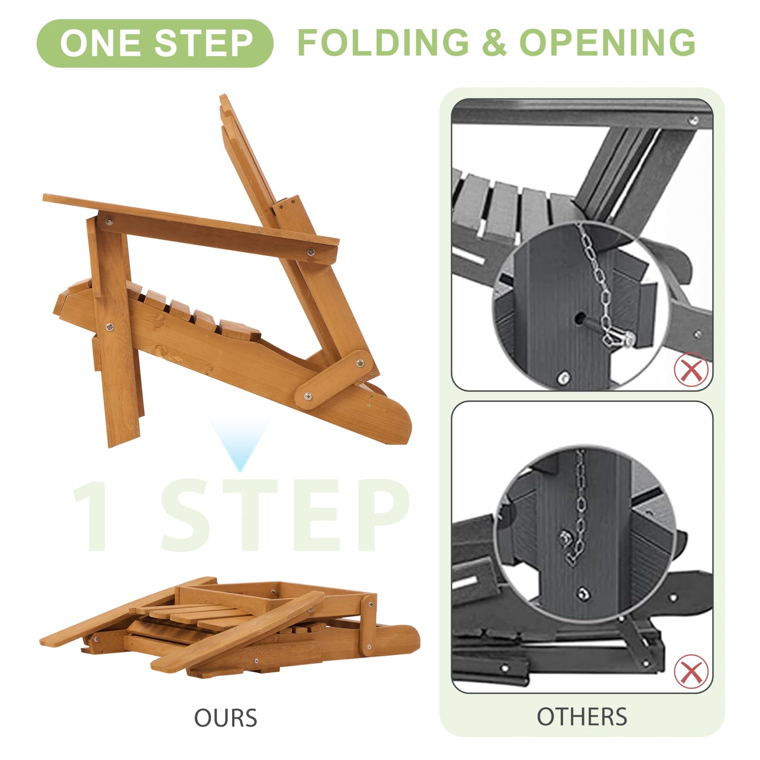 Oversized Wooden Folding Adirondack Chair with Ottoman, Pre-Assembled Backrest and Seat Board, Lounge Chair for Outdoor Patio Garden Lawn Backyard Firepit Deck Pool Beach