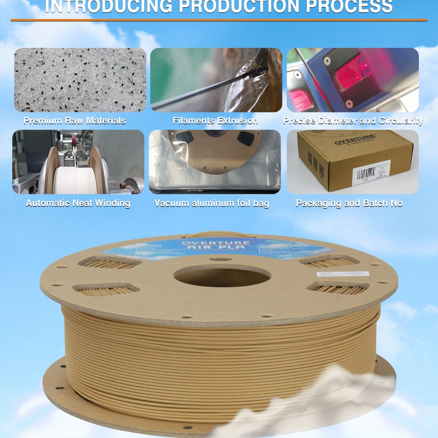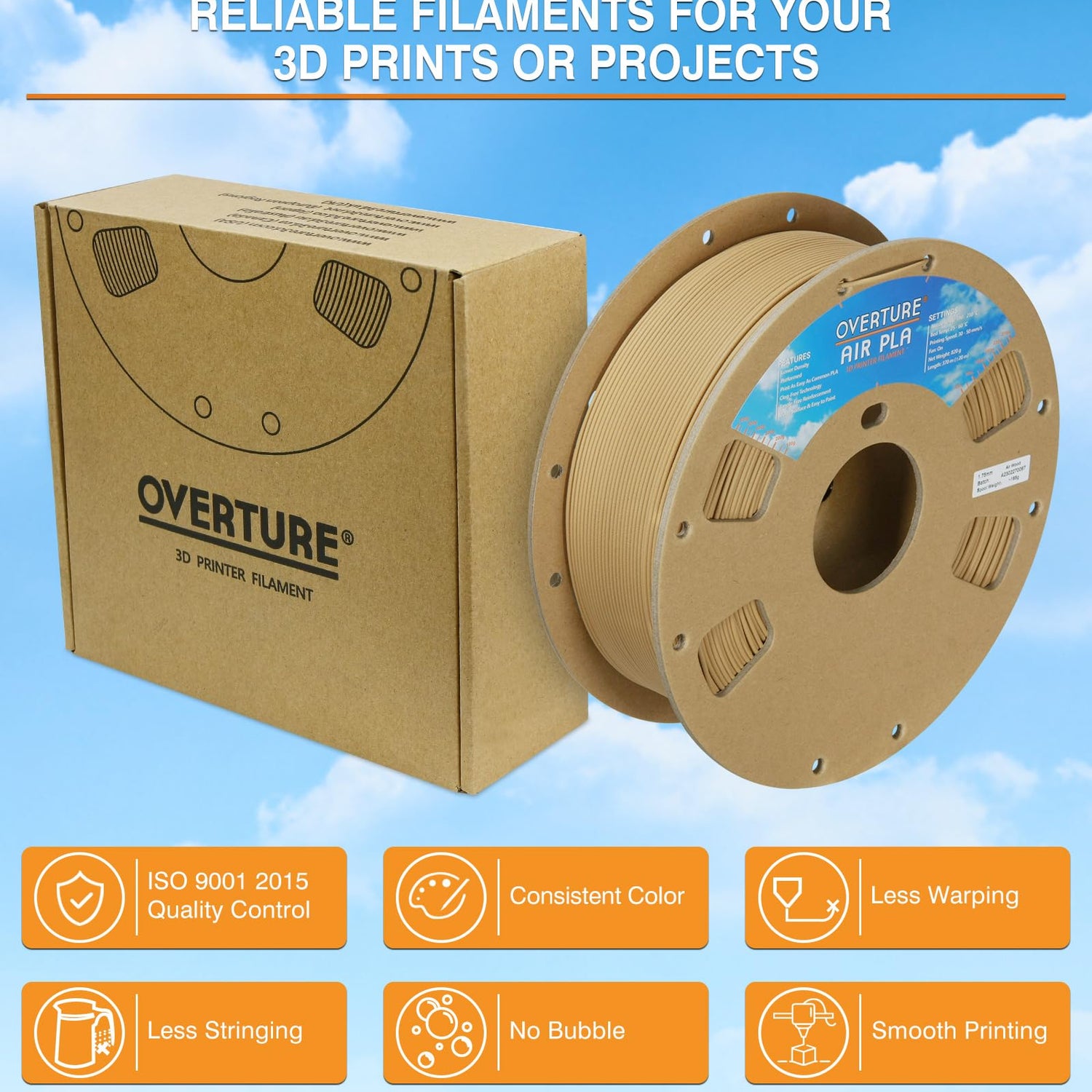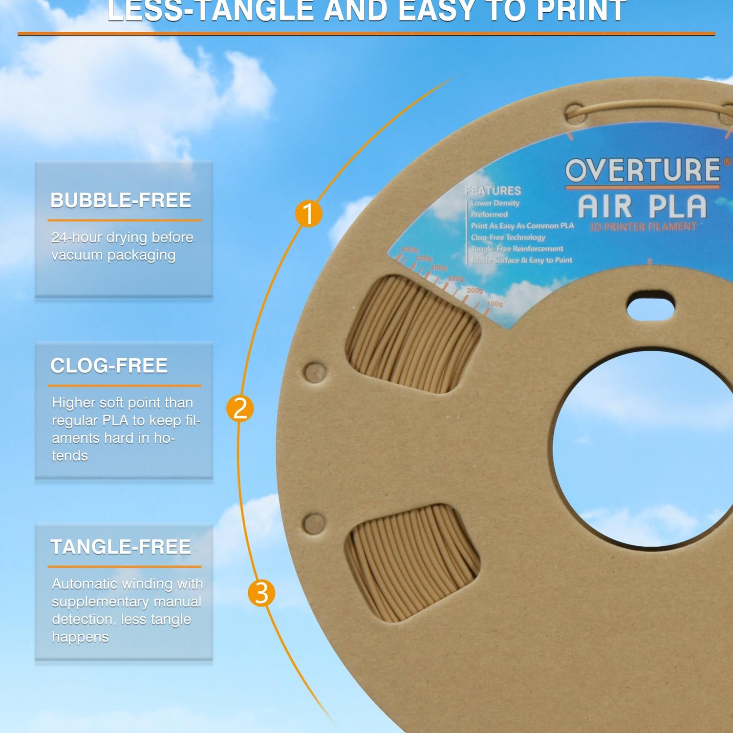 OVERTURE Air PLA Filament, Pre-Foamed PLA Low-Density, Lightweight PLA, Cardboard Spool, 0.82kg(1.8lbs), Dimensional Accuracy +/- 0.02mm (Wood)