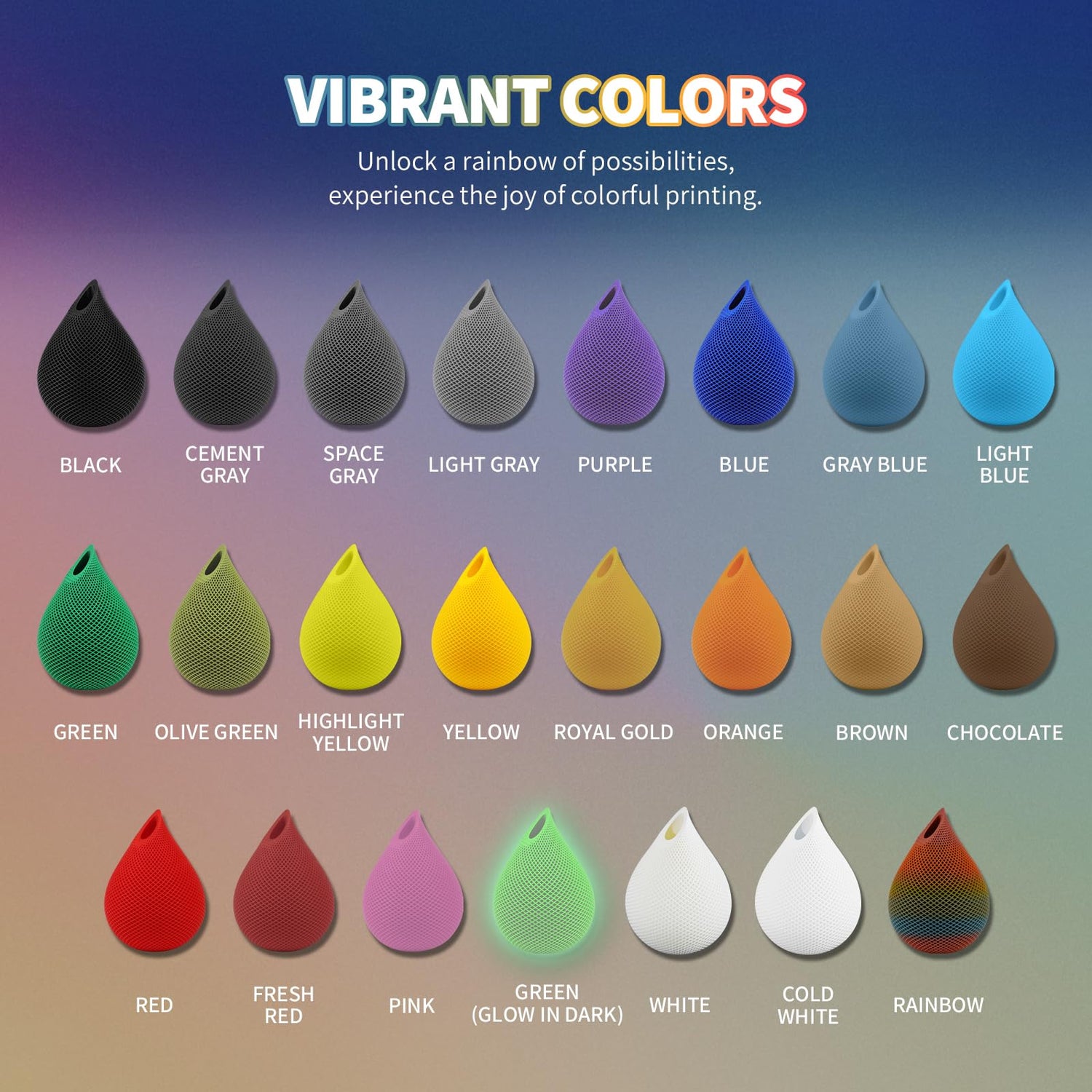 - 【Clog-Free & Bubble-Free】 Designed and manufactured with our patented clog-free formula to guarantee a smooth and seamless printing experience. All spools undergo thorough drying for 24 hours before packaging and are vacuum-sealed to preserve quality