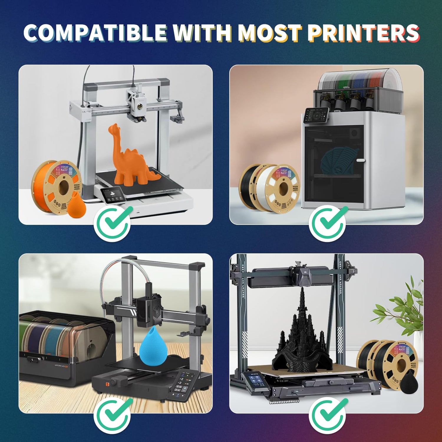 - 【Wide Compatibility and Color Selection】 Overture filaments seamlessly integrates with most consumer and industrial 3D printers. Explore your creative side with our extensive selection of vibrant colors, ensuring a spectrum of possibilities for your unique creations