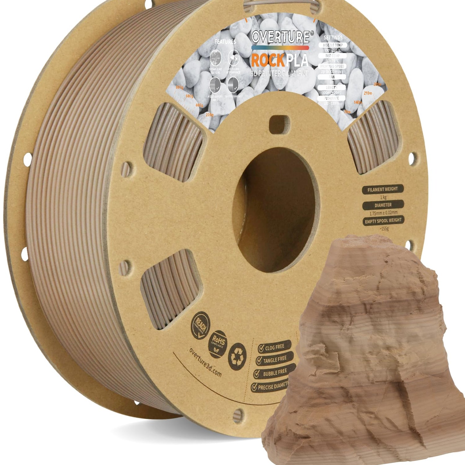 - 【Rock your Creations】Unleash your creativity and elevate your 3D prints with the Overture Rock PLA filament. As the first launch of its kind, this exclusive filament takes your prints to a whole new level with its mesmerizing rock-like texture and appearance
