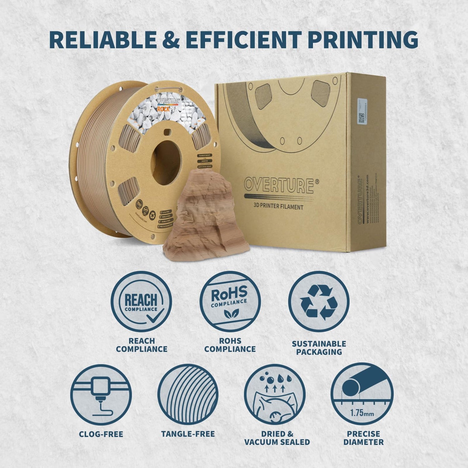 OVERTURE Rock PLA Filament 1.75mm, Marble PLA 3D Printer Filament 1kg Spool (2.2lbs), Dimensional Accuracy +/- 0.02 mm, Fit Most FDM Printer (Sedimentary Rock)