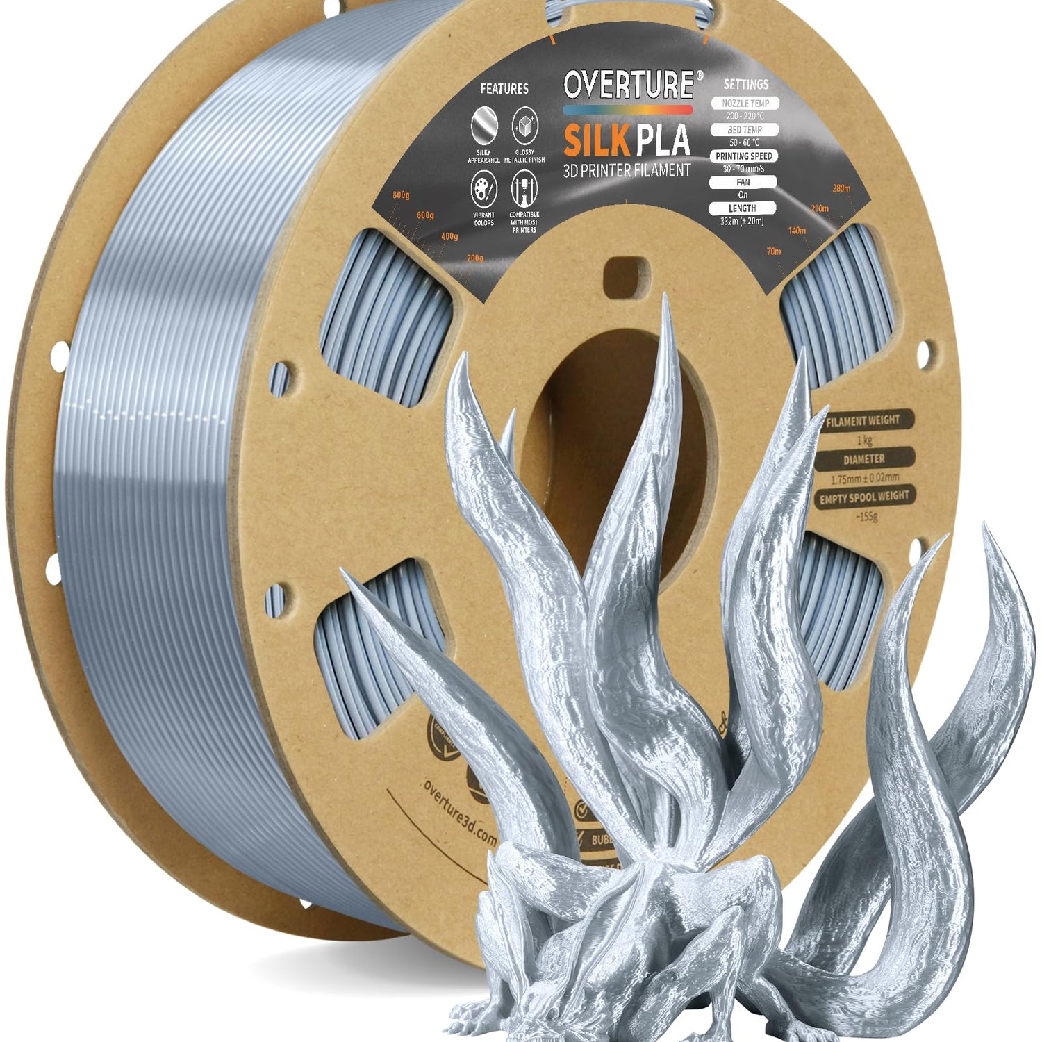 - 【Shinning Silk PLA】The Overture Silk PLA filament delivers a smooth and lustrous finish to your 3D printed creations, adding a touch of luxury and sophistication to your art and designs.With its exceptional dimensional accuracy and consistency, this filament ensures precise and detailed prints, allowing you to bring your ideas to life with professional-grade quality