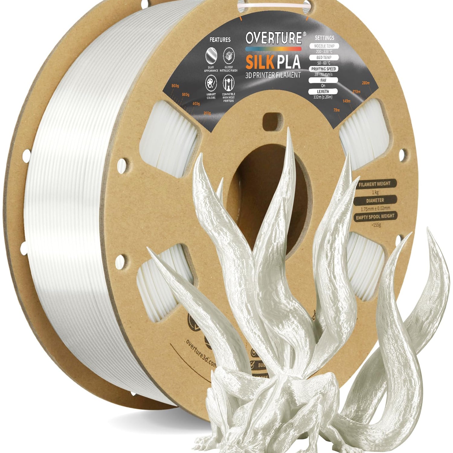 - 【Shinning Silk PLA】The Overture Silk PLA filament delivers a smooth and lustrous finish to your 3D printed creations, adding a touch of luxury and sophistication to your art and designs.With its exceptional dimensional accuracy and consistency, this filament ensures precise and detailed prints, allowing you to bring your ideas to life with professional-grade quality