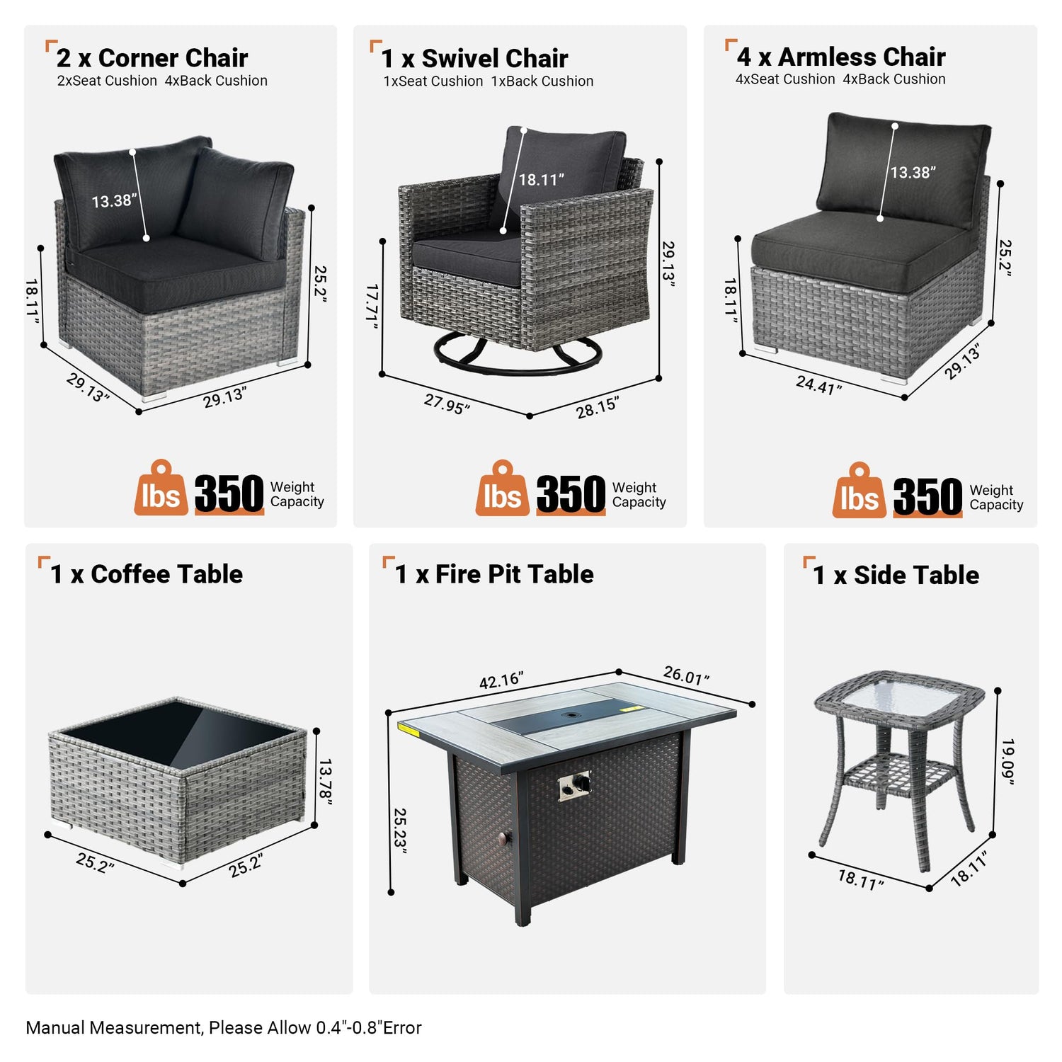 - Comfortable Outside Couch:Indulge in maximum comfort with the 3.5" thicken seat cushions and ergonomic backrest in this patio set. Ideal for extended outdoor lounging with family,and take a conversation for your guest long time, offering optimal support for your relaxation needs