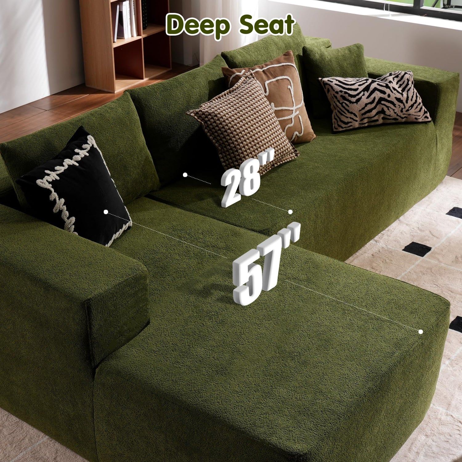 ovios 104" Cloud Sectional Couch with L-Shape Chaise,Modern Modular Sofa with Deep Seat, Upholstered Couches for Living Room Bedroom,No Assembly Required, Green (Cloud Velvet)