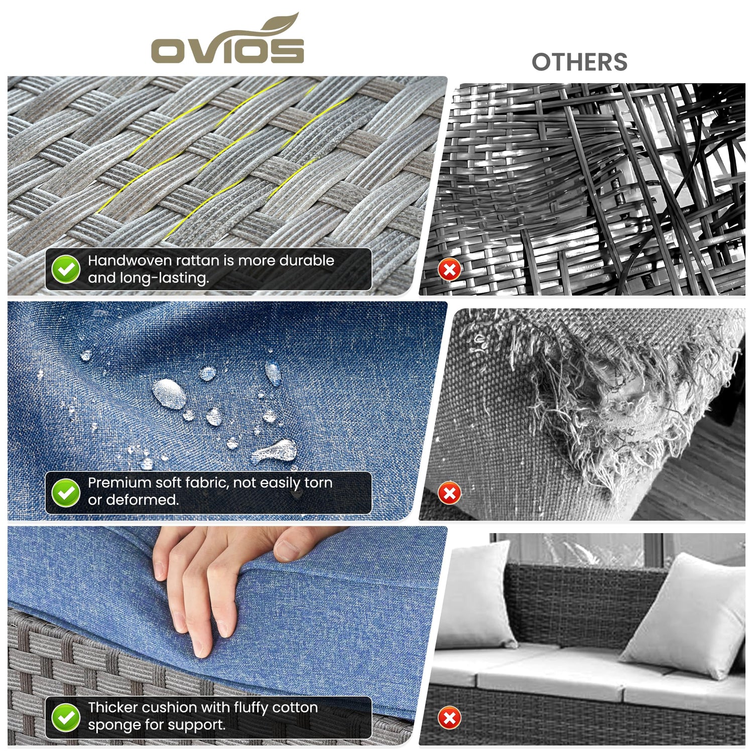 - Outdoor Furniture Set: This patio sofa set can well integrated into different outdoor scenes, patio, outdoor, porch, garden, backyard, balcony, poolside, lawn, yard, deck, etc. Assembly Tips: OVIOS outdoor patio furniture set comes with all hardware & necessary tools