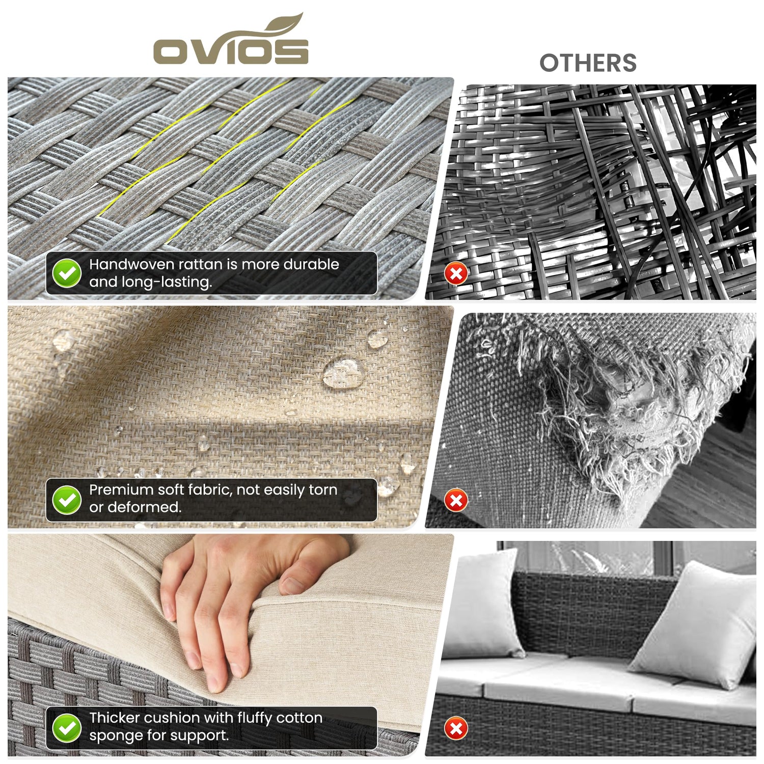 - All-weather Wicker Rattan: Our outdoor sofa sets have very durable wicker rattan for all-weather use and a natural texture with good coloring. The high-quality patio seating made of powder coated steel frame ensures good strength and stability.