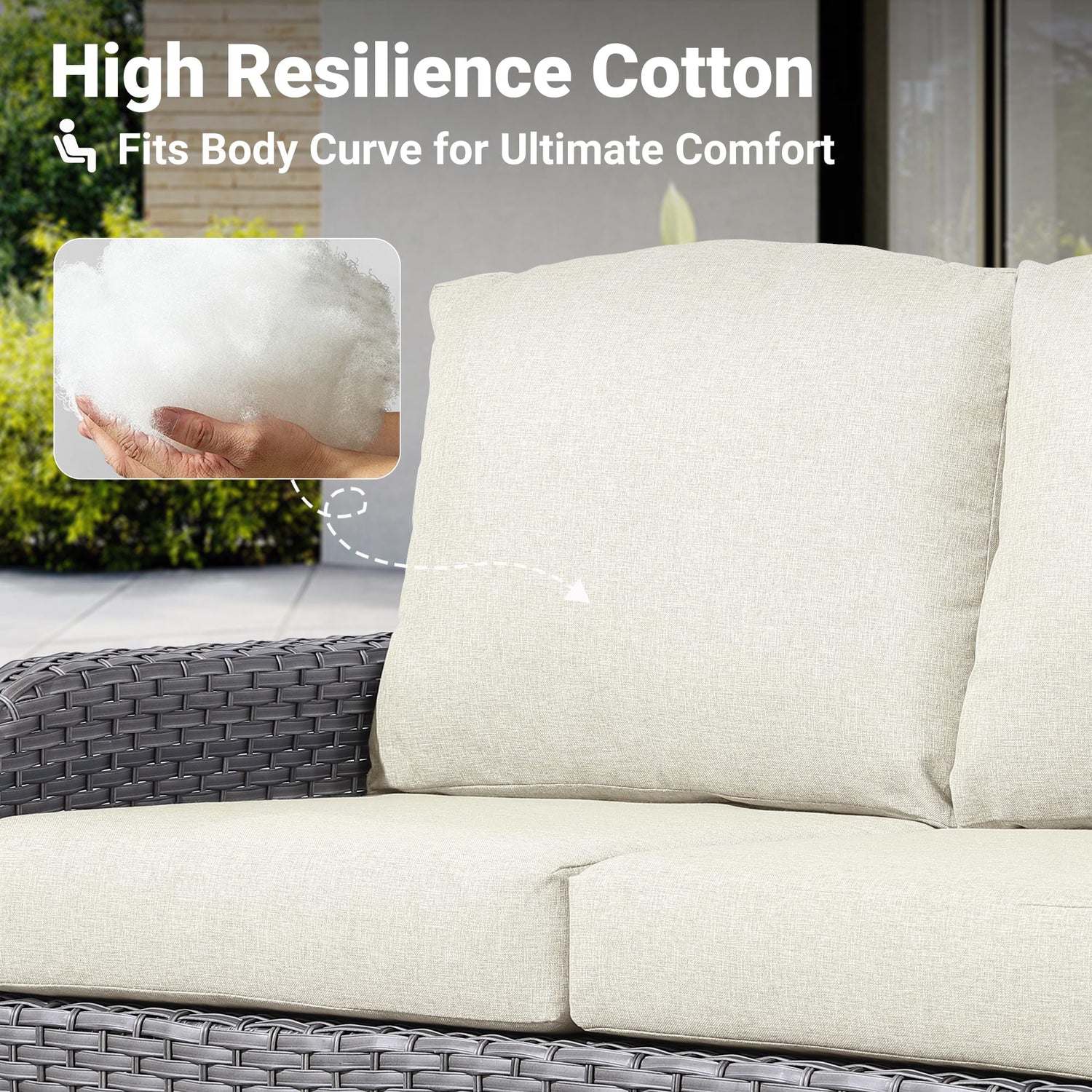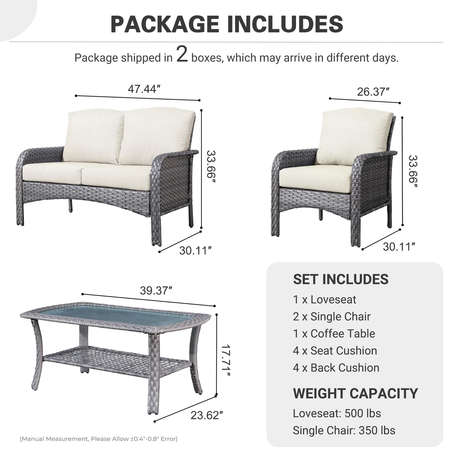 ovios 4 Pieces Patio Furniture Set, Outdoor Wicker Sofa with Coffee Table, Chairs, All Weather High Back Rattan Loveseat Couch with Comfy Cushions, Beige