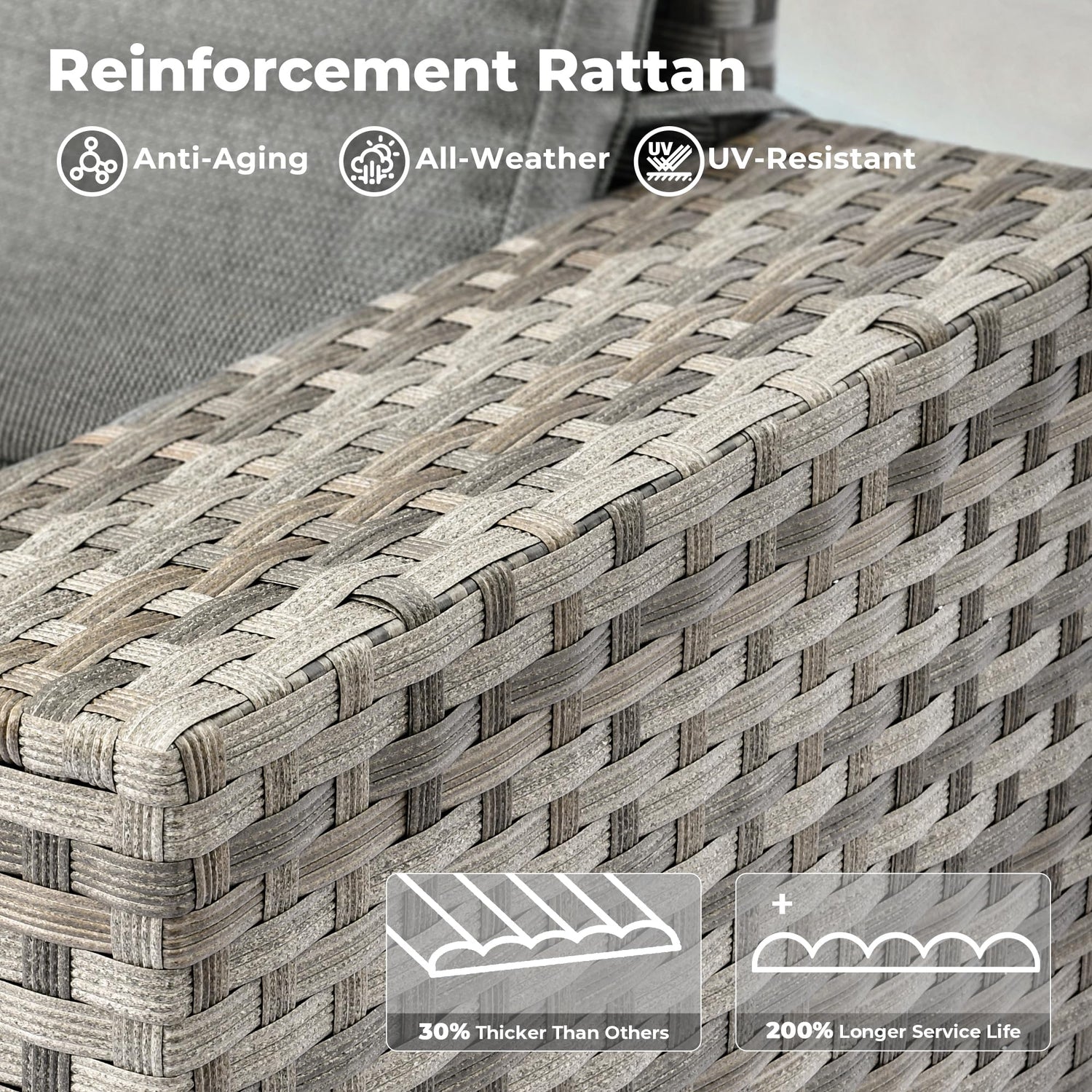 - All-weather Wicker Rattan: Our outdoor sofa sets have very durable PE wicker rattan for all-weather use and a natural texture with good coloring. The high-quality patio seating made of powder coated steel frame ensures good strength and stability