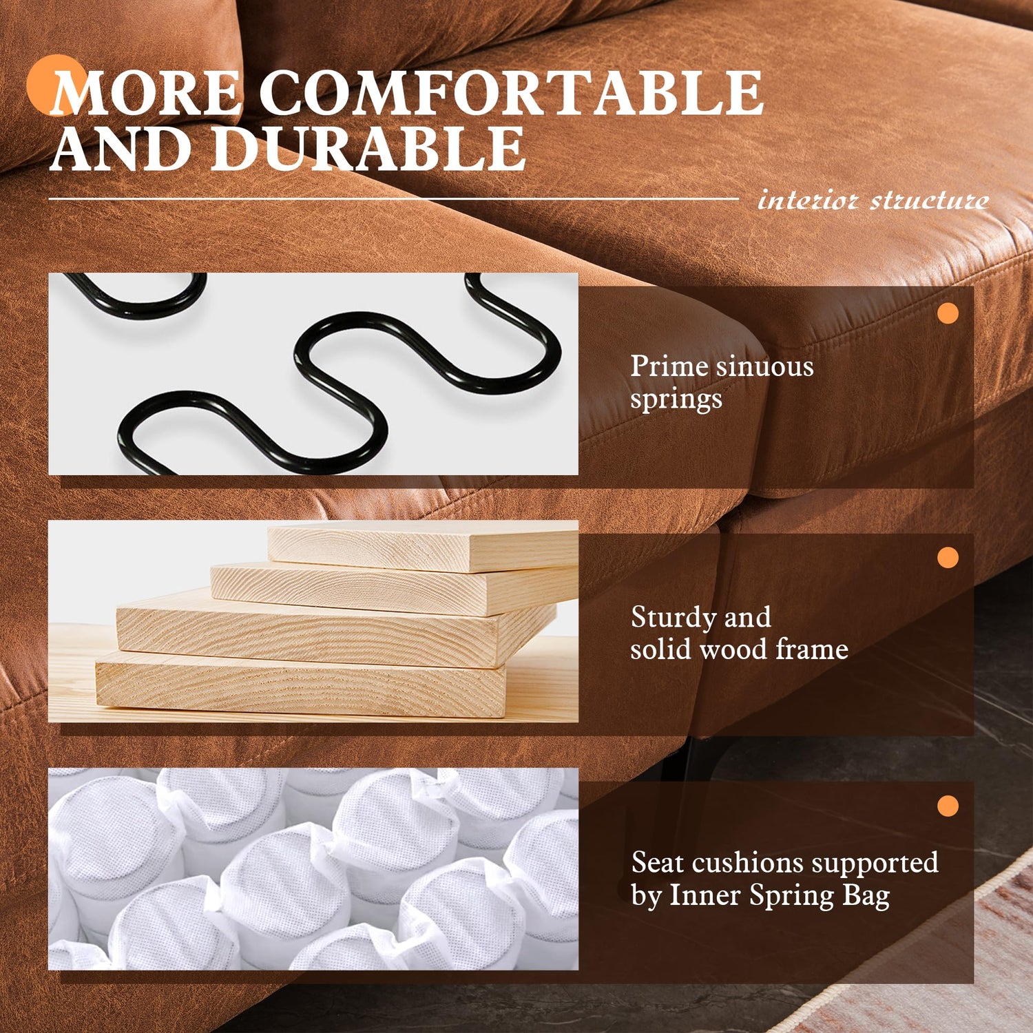 - Comfy Sofa Couch: Stylish L-shaped sectional sofa is made with classic timeless look, strong metal accent leg and suede fabric design that will complement any living space.