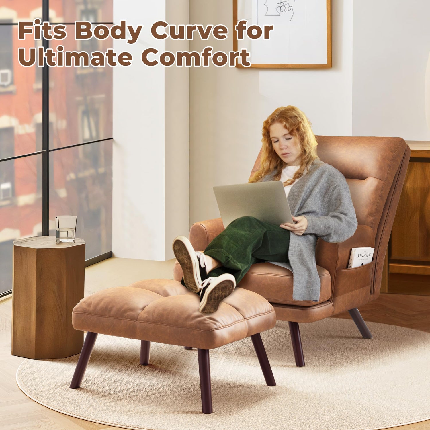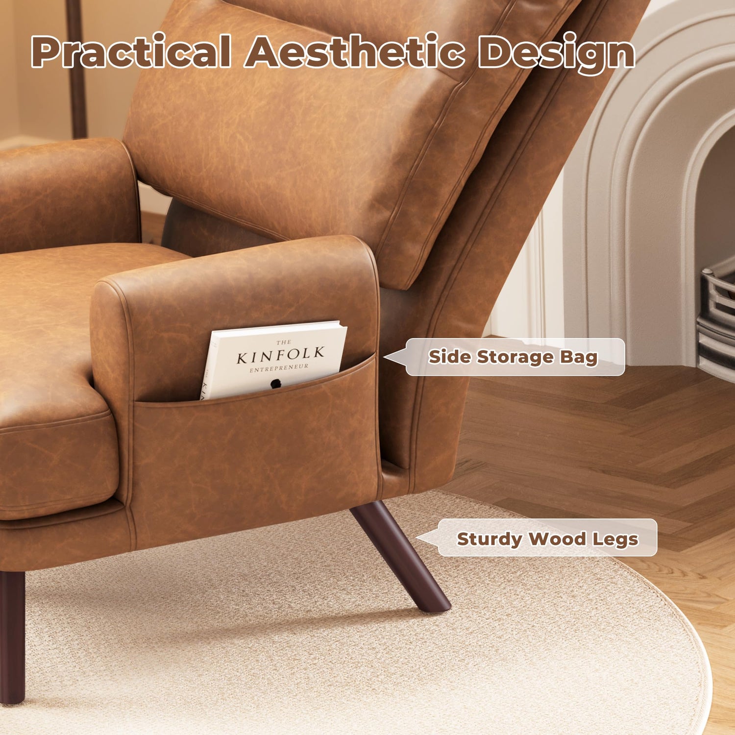 ovios Indoor Reclining Chair with Ottoman, Accent Reading Chairs with Footrest Side Pocket, Modern Comfy Lounge Recliner for Living Room Bedroom, Faux Suede Leather, Brown