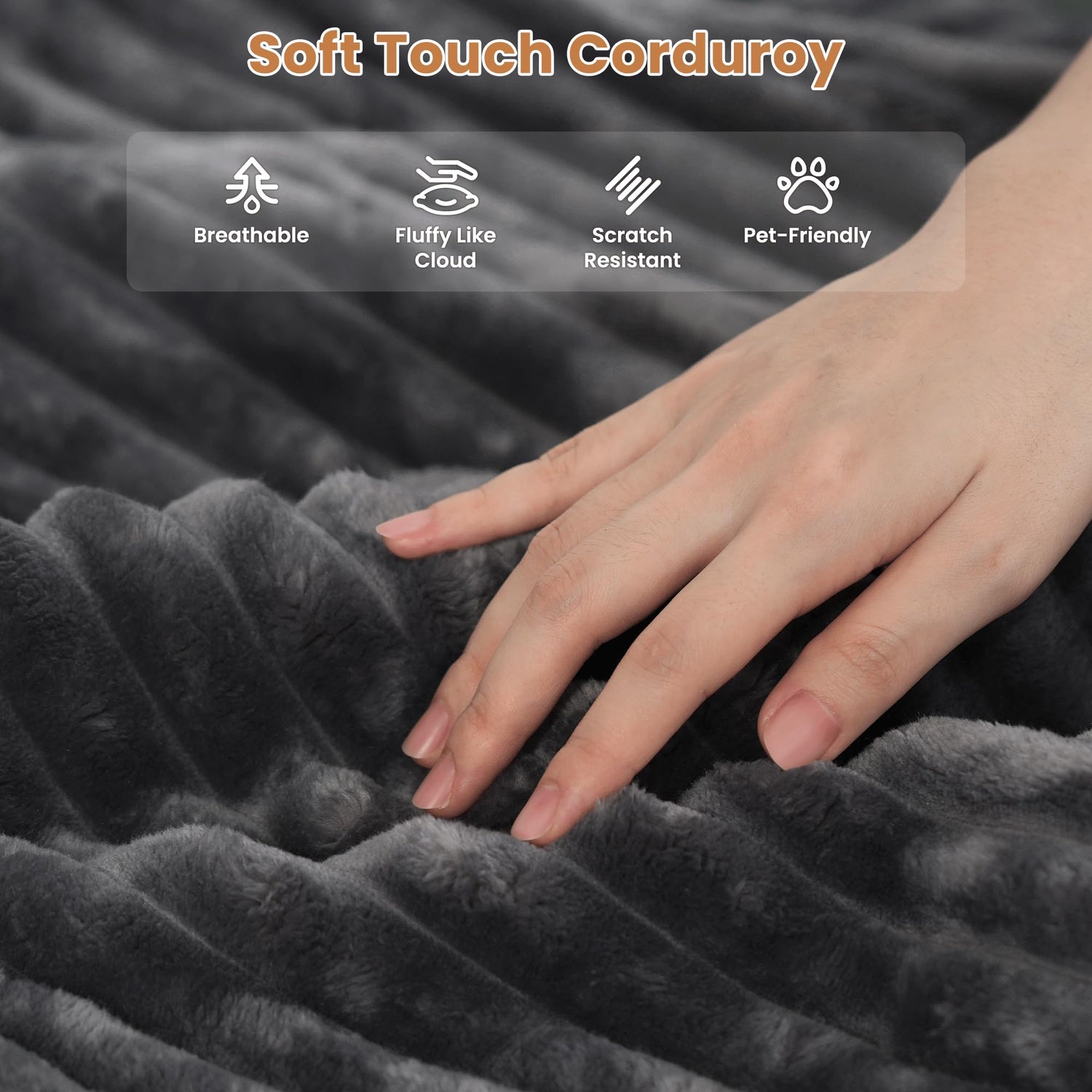 - Cloud Plush Corduroy: Exquisite and luxurious plush corduroy fabric offers constant softness and comfort, with its unique cloud-like fluffy texture and luster standing out. Don't worry if your pet likes to paw at the sofa, the plush corduroy fabric is anti-scratch and can easily allow you to remove clumps of hair