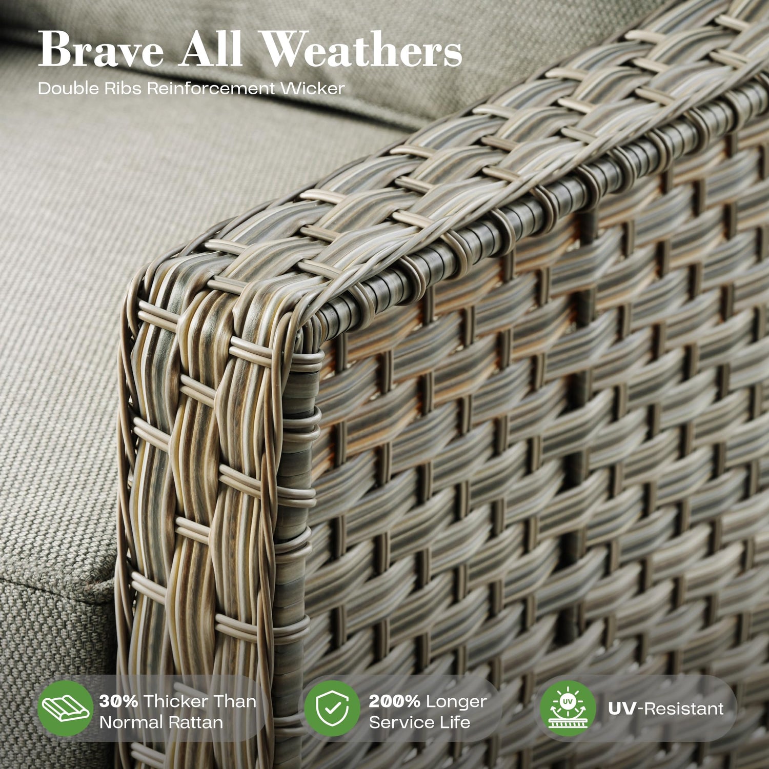 - Sturdy & Durable:The outdoor sectional sofa set is constructed with a solid, powder-coated steel frame that features a cross structure, making it both rustproof and sturdy. Additionally, the hand-woven PE wicker offers high tensile strength and water resistance, ensuring that it can withstand all weather variations for a long service life