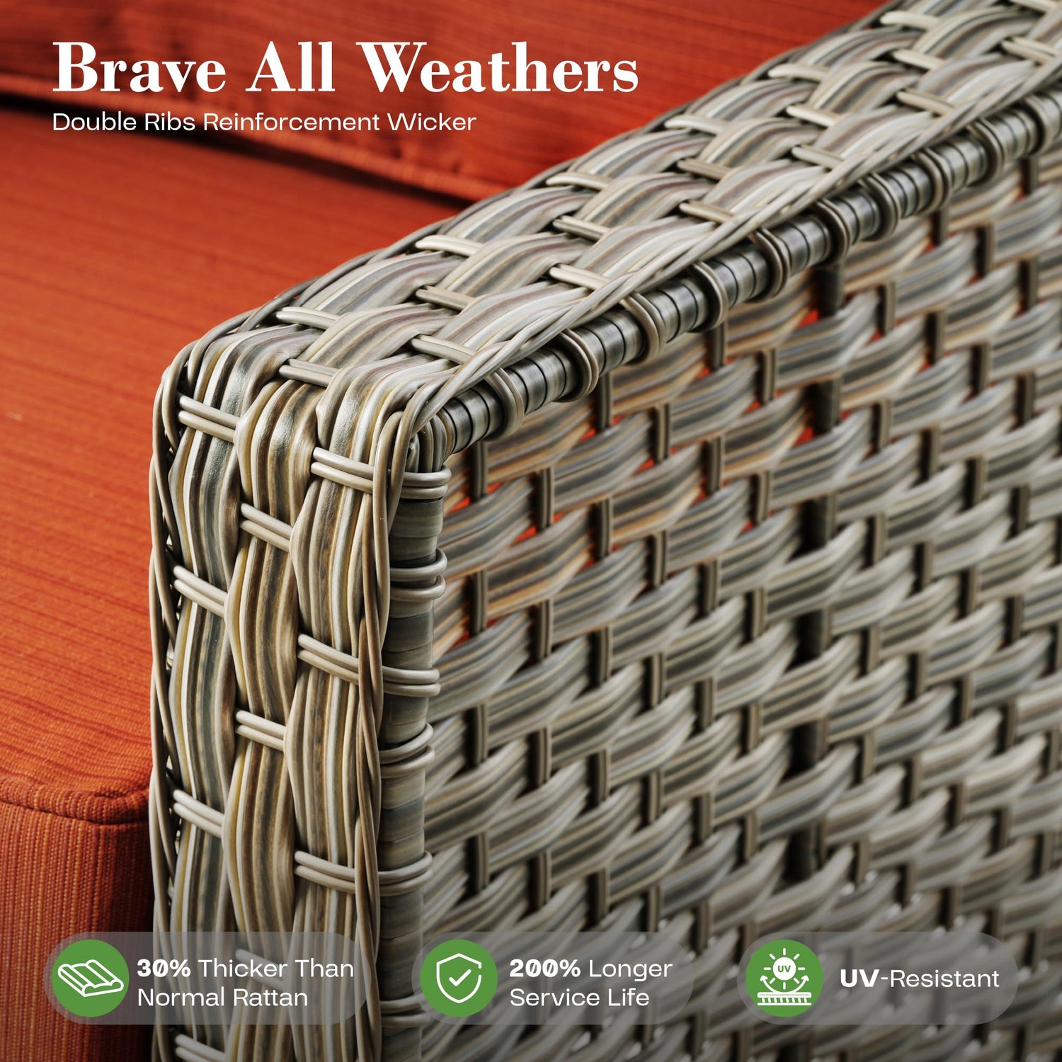 ovios Outdoor 6 Piece Patio Furniture with Fire Pit Table,Wicker Coversation Set with Single Chair,Comfy Sectional Deep Sofa with Ottoman for Outside Porch Balcony Backyard Pool,Orange