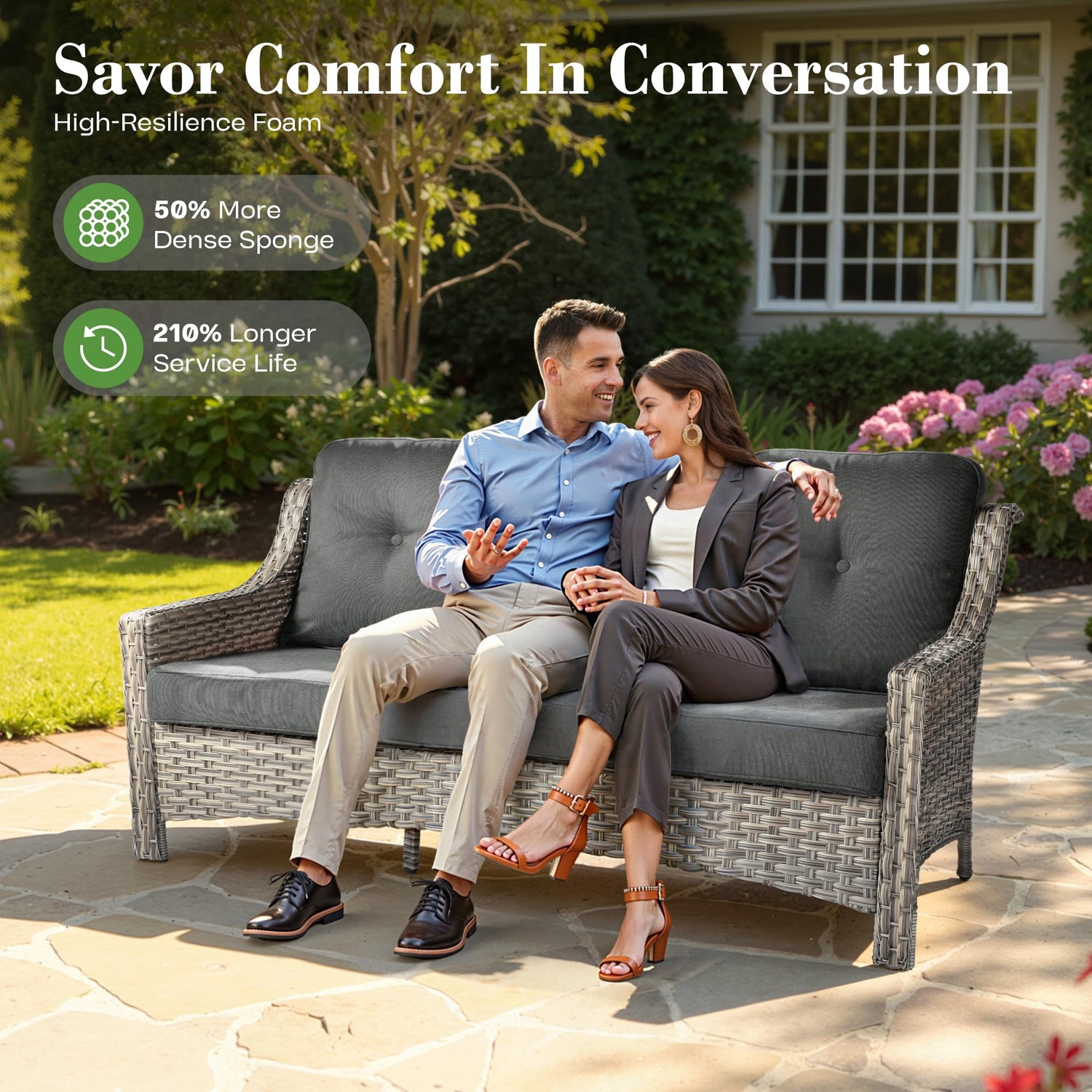 - Sturdy & Durable:The outdoor sectional sofa set is constructed with a solid, powder-coated steel frame that features a cross structure, making it both rustproof and sturdy. Additionally, the hand-woven PE wicker offers high tensile strength and water resistance, ensuring that it can withstand all weather variations for a long service life