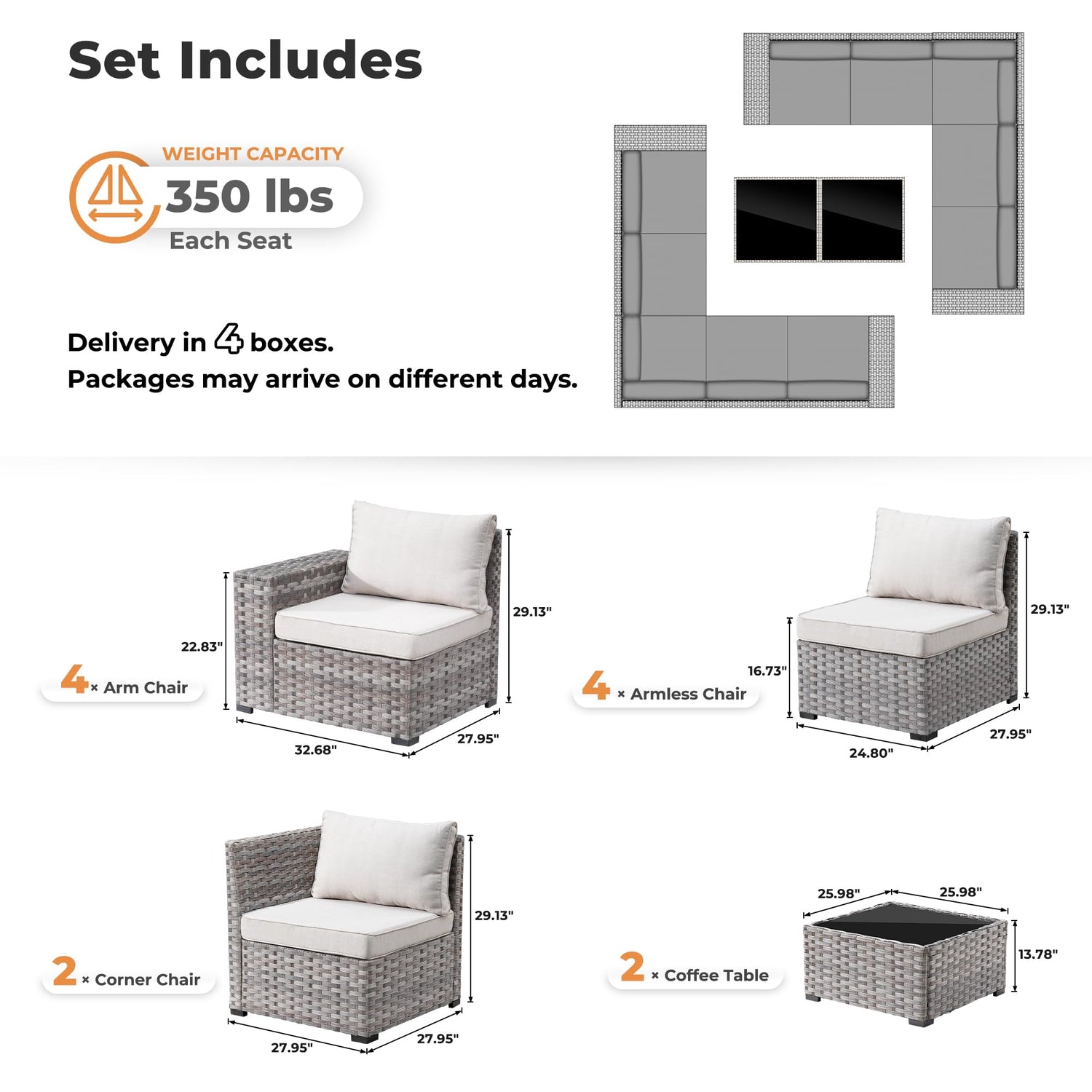 ovios Patio Furniture Set 12 Pieces Outdoor Sectional Sofa Set with Comfy Cushions and Deep Seat, Modern Modular Wicker Rattan Conversation Set, Beige