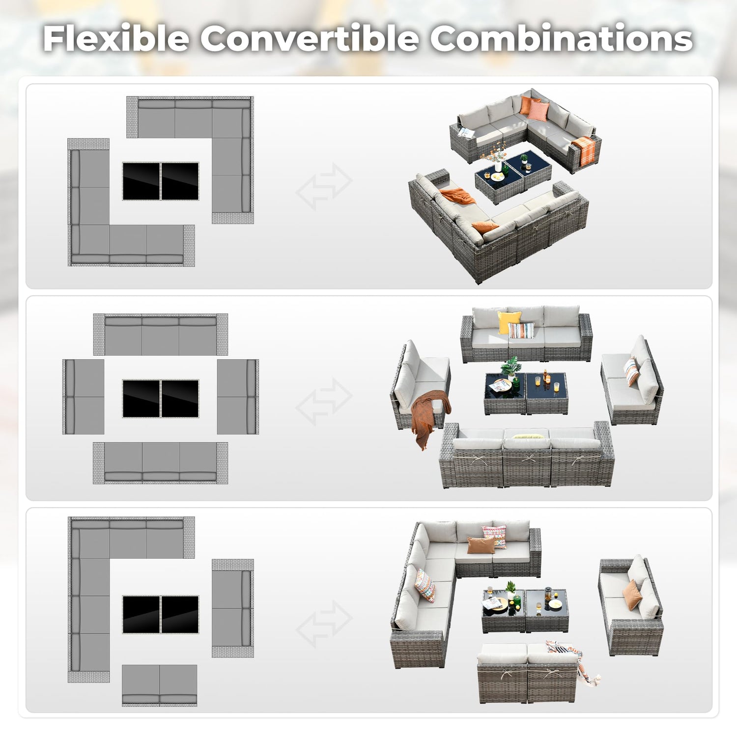 - Modular Combination: Outdoor sectional sofa set can be separated into 10 single seats, which can be freely combined with the included connecting clips to create the outdoor seating arrangement you want to fit into a variety of spaces.