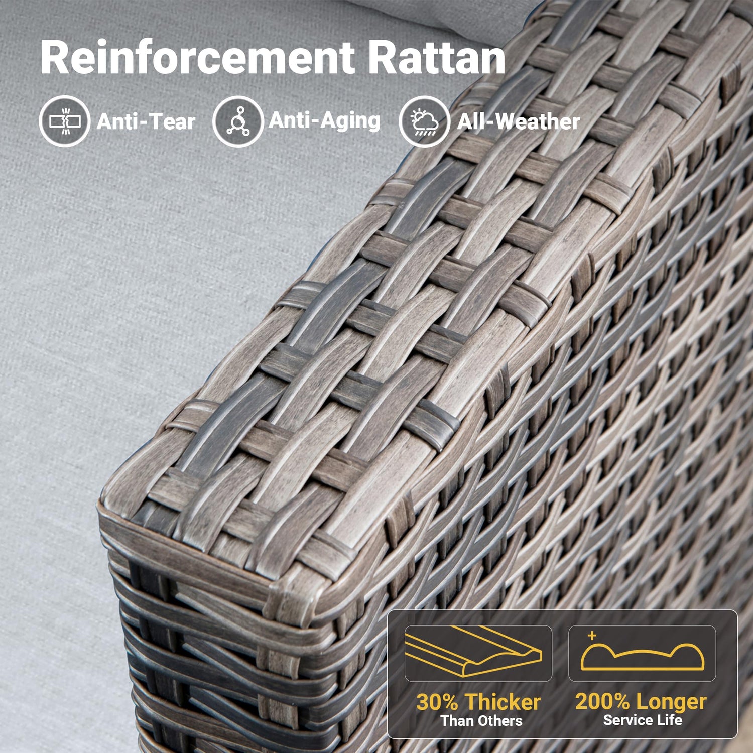 - Premium Wicker Rattan: Our modern outdoor sofa set is designed with a classic natural rattan look, all-weather sofa made of sturdy rust-resistant steel construction, providing strong support and balance for the patio seats.