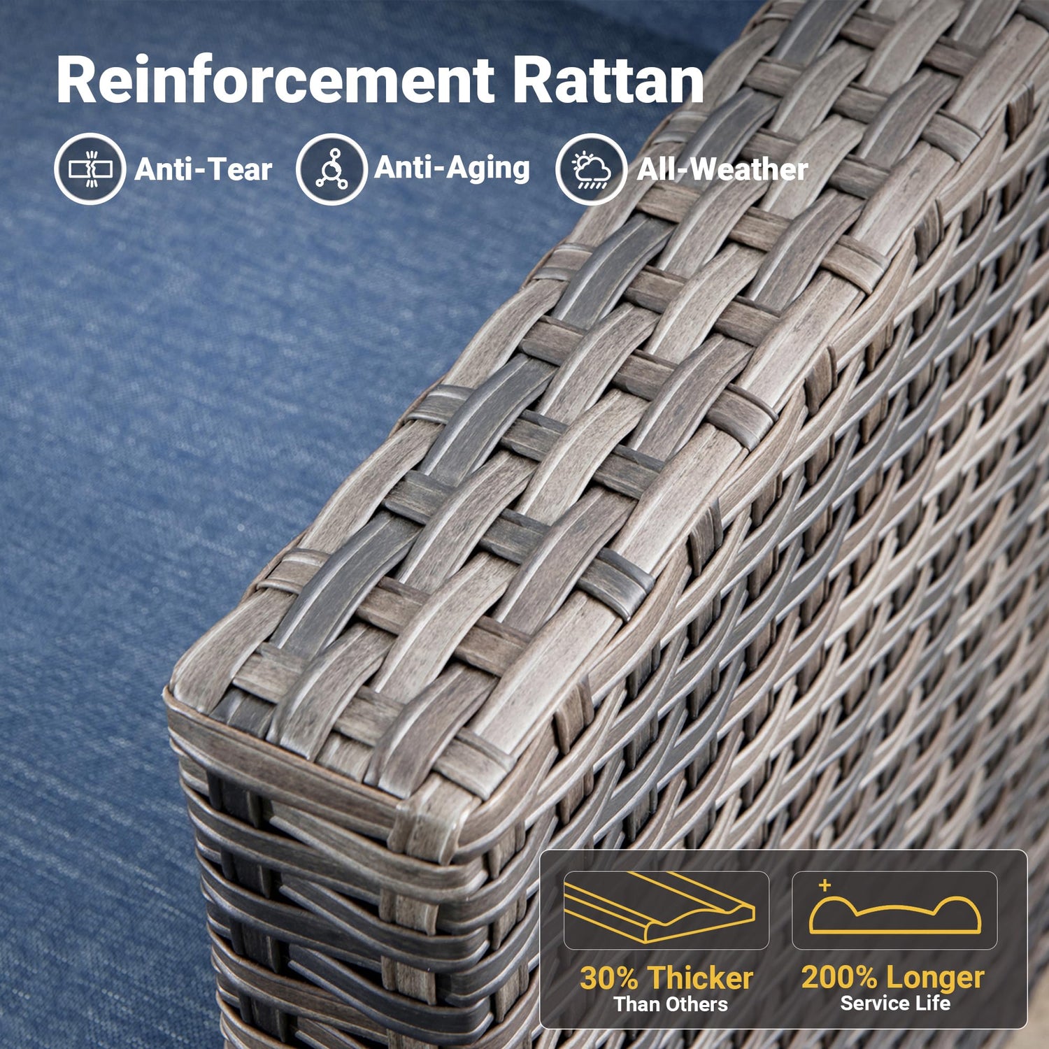 ovios Patio Furniture Set, 6 Piece Outdoor Wicker Sofa with Swivel Rocking Chairs and Comfy Cushions, High Back Rattan Couch Conversation Set, Denim Blue