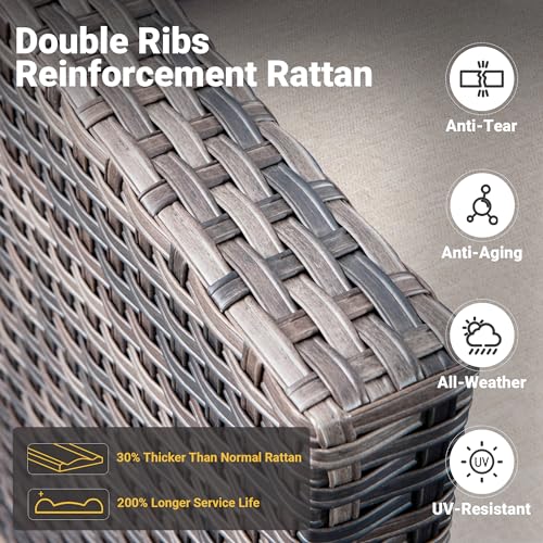 ovios Patio Furniture Set, 7 Piece Outdoor Wicker Sofa with Swivel Rocking Chairs, Loveseat and Comfy Cushions, High Back Rattan Couch Conversation Set, Beige