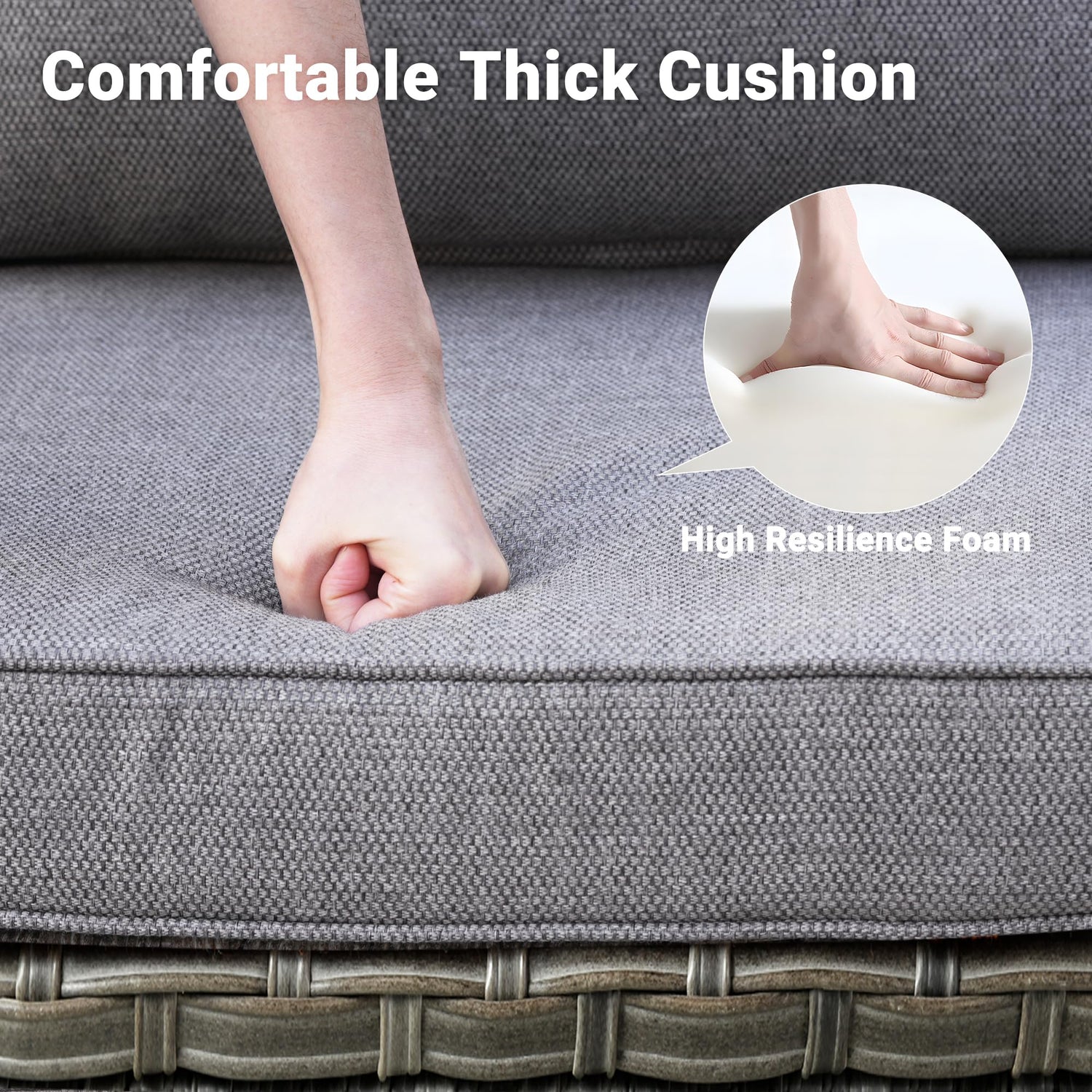 Comfy Thick Cushion: Upgraded seat cushions are all made of high density sponge with 3.54 inches, which is more breathable for your comfort. The olefin fabric cushion covers designed by zipper are removable and washable.