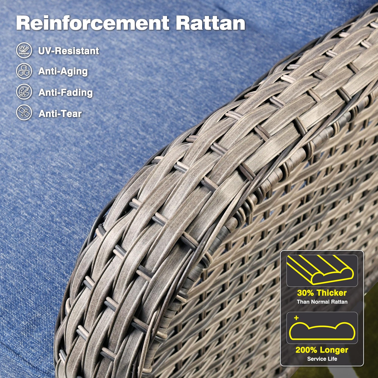 - HIGH BACK & WIDE ARMREST:This outdoor furniture set features with a high back and wide armrest,better to support your neck and arms. The seat is ergonomically widened for optimal comfort. The weight of a three person sofa is 660LBS, and the weight of a single sofa is 250LBS. It's a great choice for tall and big people.