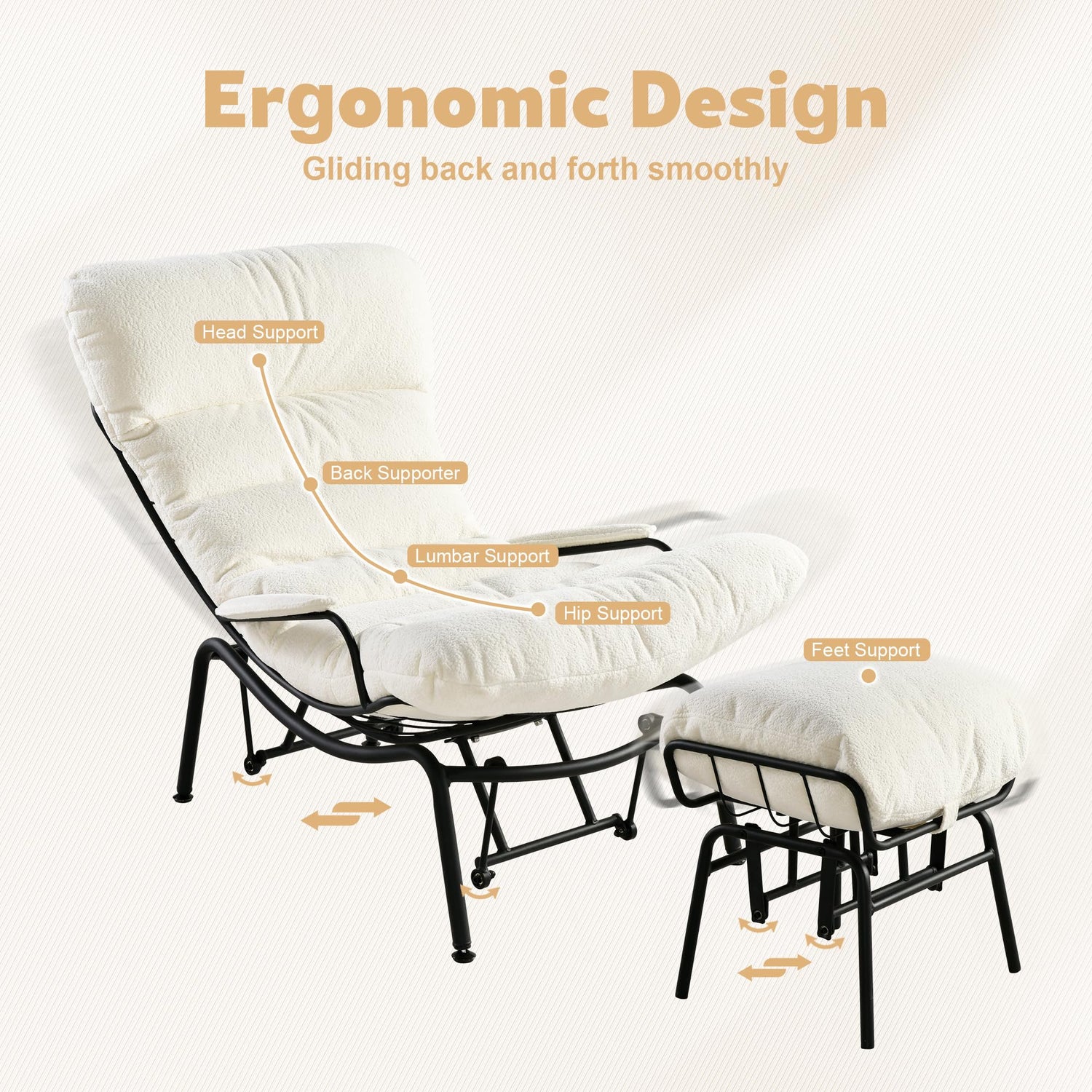 - Glider Rocking Chair with Footrest: Enjoy the ultimate comfort experience with our chair that bring your head, back, lumbar and hips the feeling of floating on a cloud