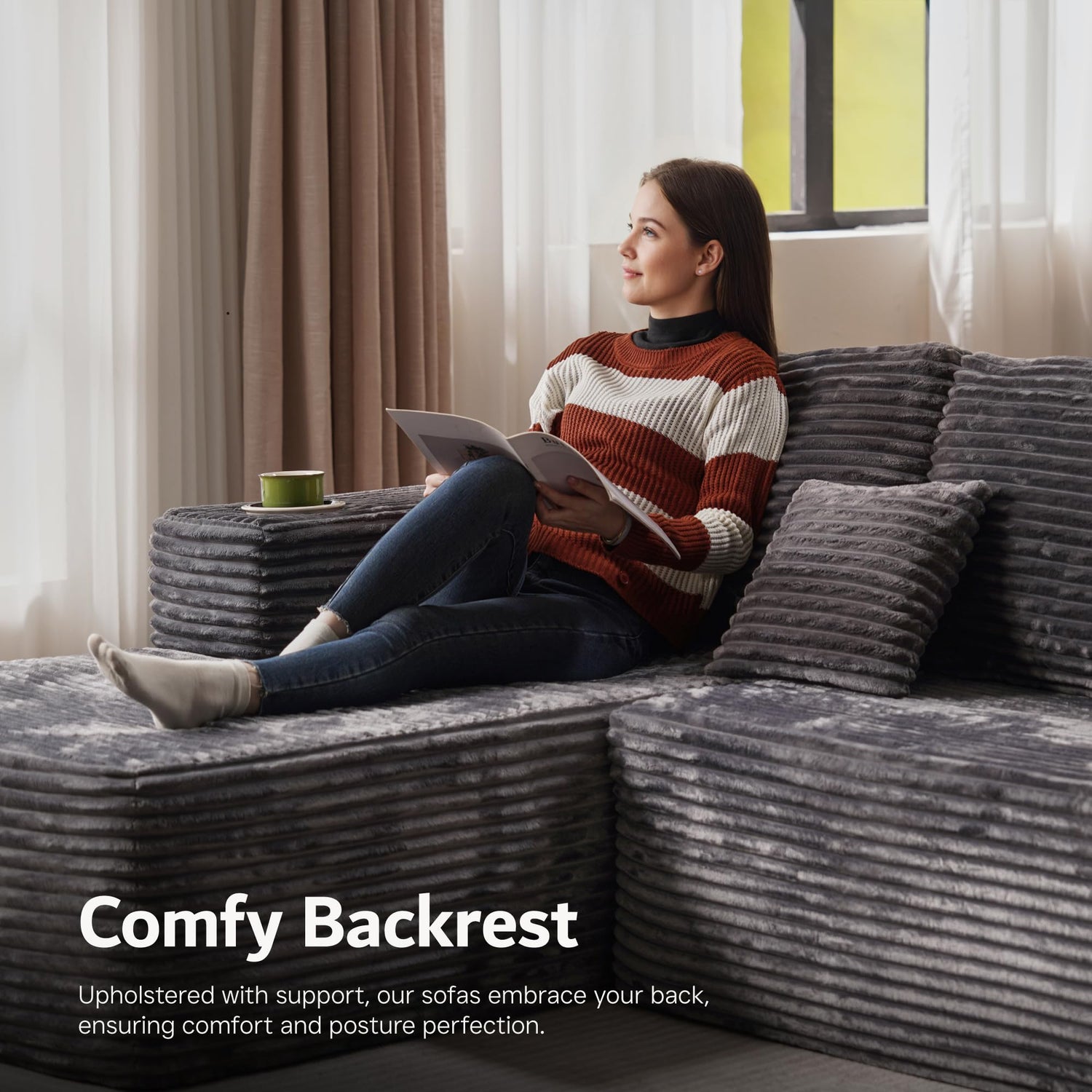 ovios Sectional Cloud Couch for Living Room, Modular Floor Sofa with Plush Corduroy, No Assembly Required, Big Comfy Couches Set with Fluffy Memory Foam, Stupendous U Shaped Sofas with Chaise, Grey