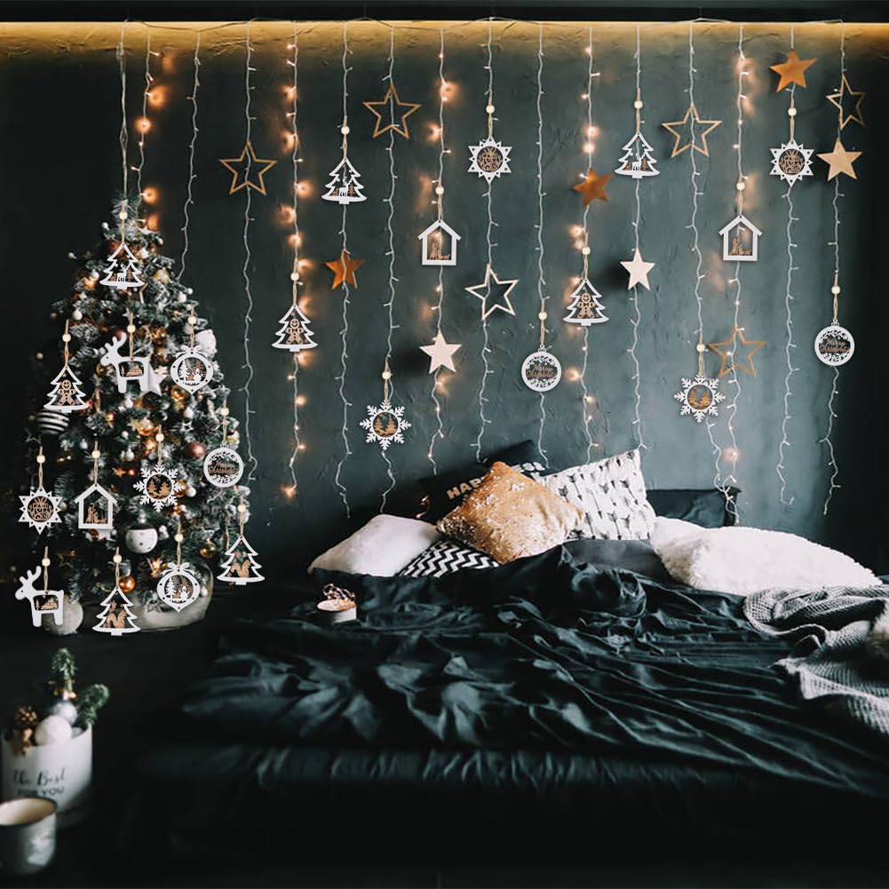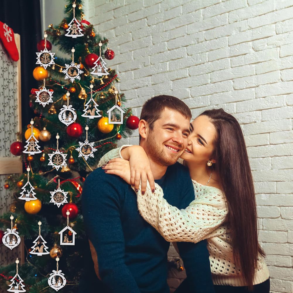 - 3D CHRISTMAS DREAMS: Unwrap the Magic! Step into a world of enchantment with our ingenious 2-layer design. The white outline of the wooden Christmas decors dances against a wood-color background, crafting a spellbinding 3D Christmas landscape on every ornaments for Christmas trees. Feel the joy of a cozy holiday home, complete with festive scenes that warm your heart.