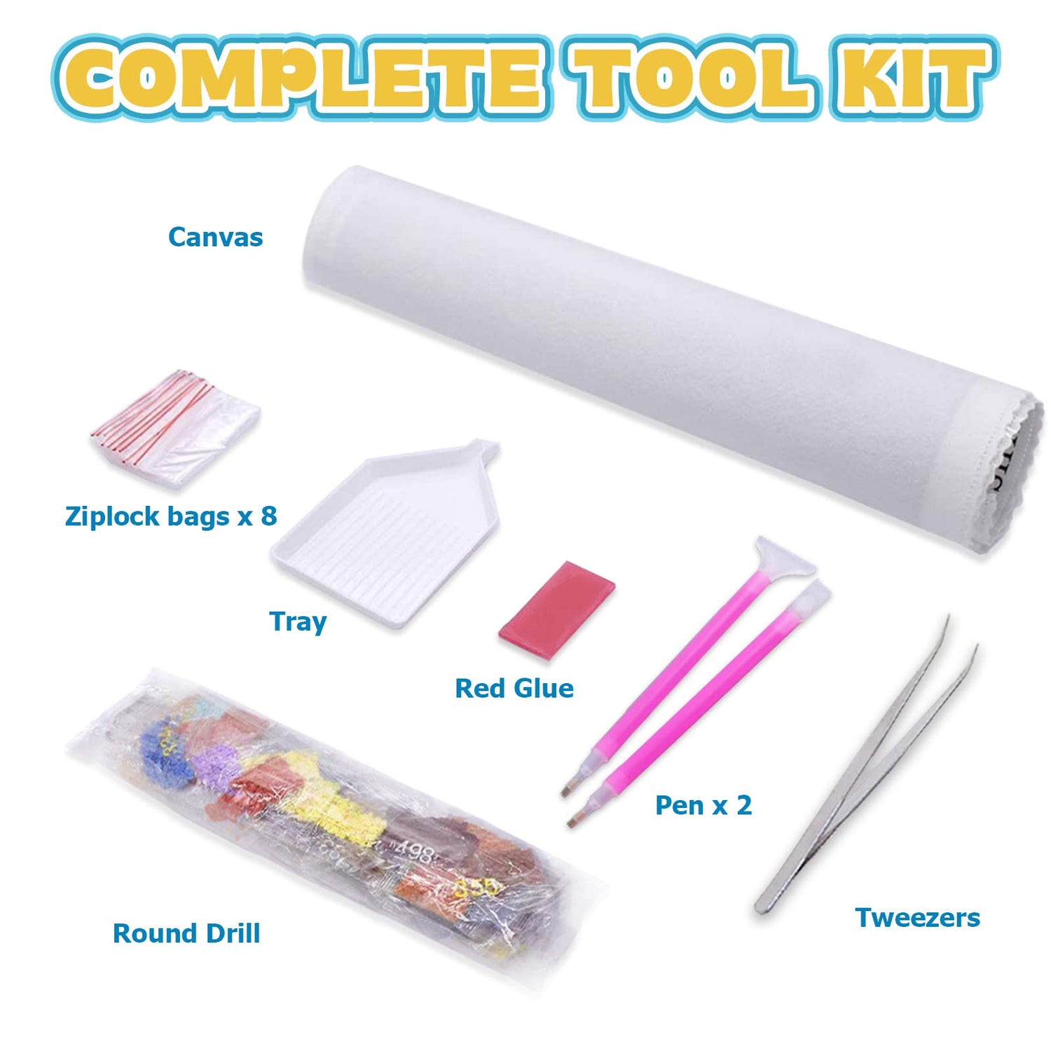 - 💎Diamond Art Kits for Adults: This 5D diamond art kit comes with all accessories: 1x waterproof HD canvas, 2x diamond pens, 1x tweezers, 1x wax, 8x self-sealing bags, 1x tray, and 30% extra diamond beads. No need to buy extra tools!