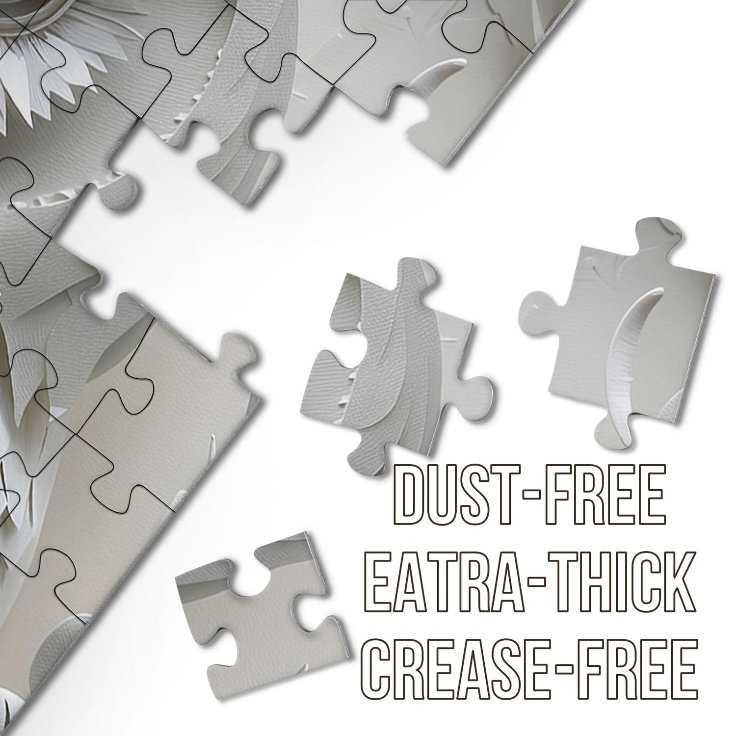 - Enchanted White Owl Puzzle - Immerse yourself in the magic of our pure white jungle owl paper-cut puzzle. This exquisite design captures the elegance and mystery of the forest. Perfect for art lovers and puzzle enthusiasts alike. Experience the serenity and challenge of piecing together this stunning masterpiece