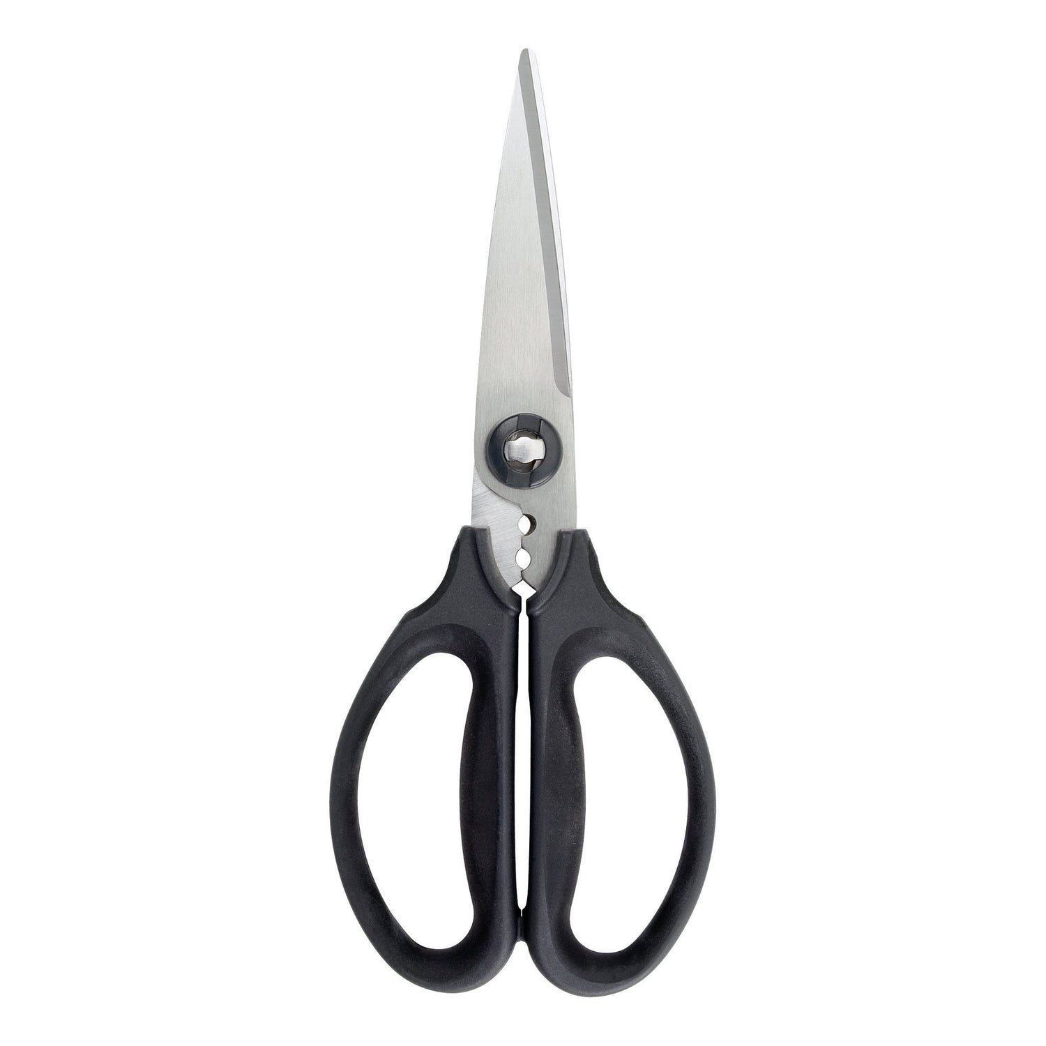 The OXO Good Grips Kitchen and Herb Scissors are your ultimate all-in-one cutting tool. Micro-serrated stainless steel blades easily slice through everything from meat and vegetables to cardboard and twine. The built-in herb stripper quickly removes leaves from tough stems. Soft, non-slip pads on the handle make for comfortable cutting, and cleaning is a breeze thanks to pull-apart blades, which allow access to hard-to-reach areas.