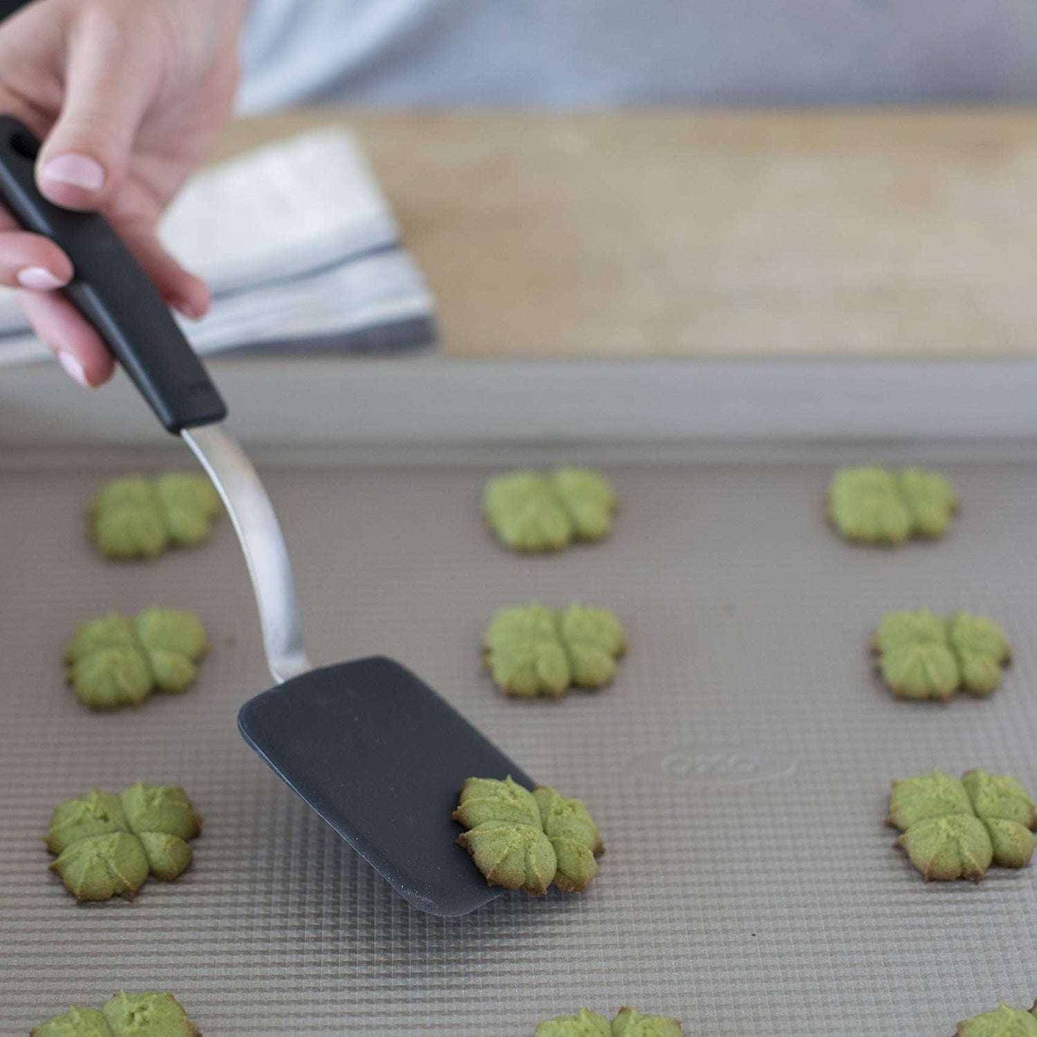 - Spatula is the ideal size for lifting cookies from cookie sheet