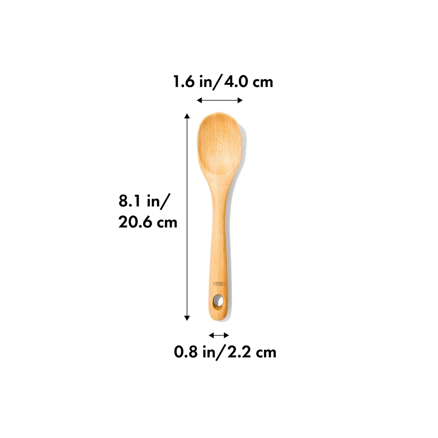 Details: The OXO Good Grips Wooden Small Spoon is your go-to tool for stirring, tasting and serving sauces and smaller dishes. It’s also the perfect size to get your little ones involved in the kitchen! With a solid, beechwood construction it’s sturdy and safe for non-stick cookware. The spoon features a natural oil finish that protects the wood for durability. The handle is comfortable to grip and has an opening for neat hanging storage. Hand wash only.