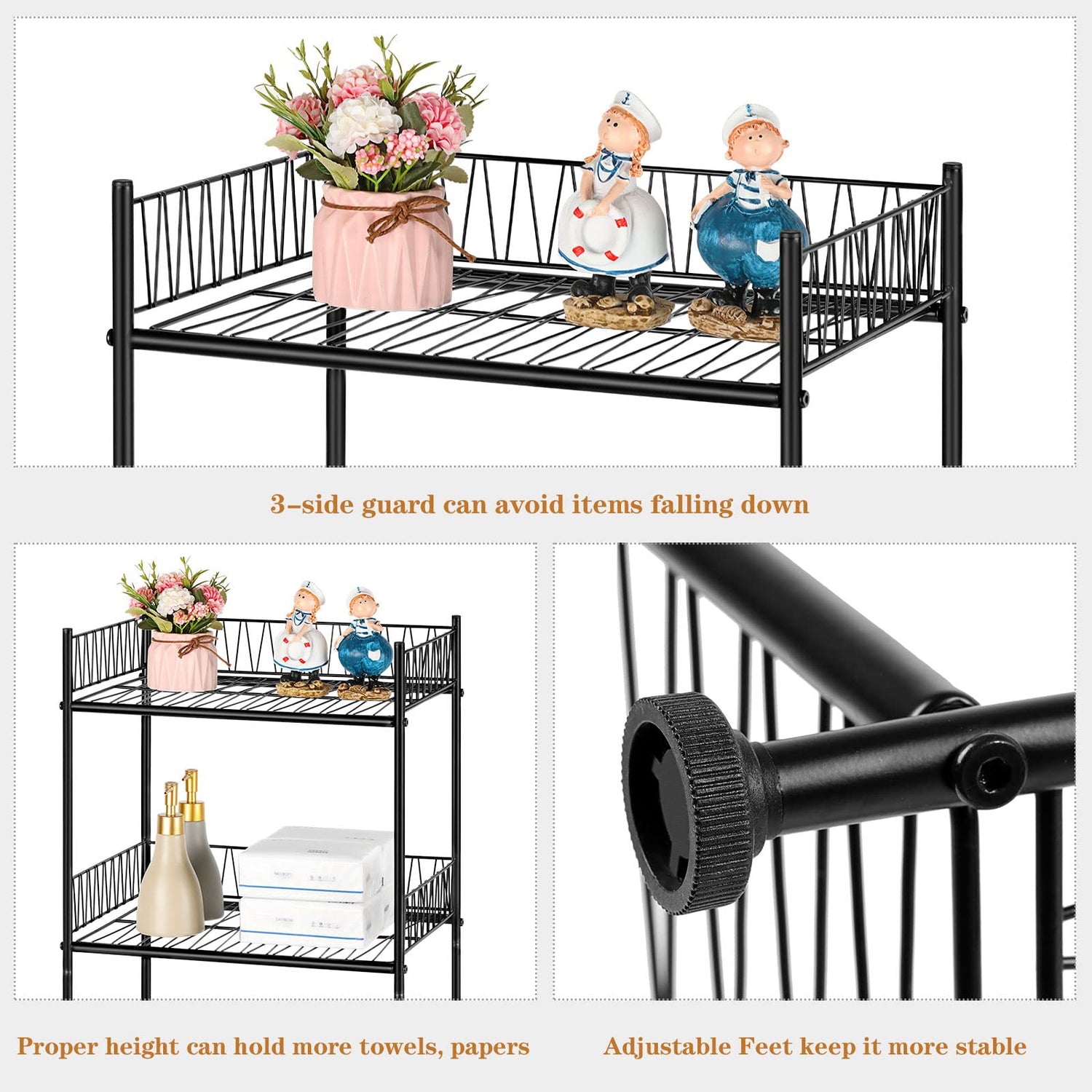 - 【Water-Proof & Anti-Slip】: The metal towel storage for small bathroom has a black finish processed by high-temperature baking coating, which will make the shelves water-proof and rust-proof. Coming with rubber feet to make the bathroom rack skidproof. Adjust the height of the rubber feet can make it fit uneven floor better.