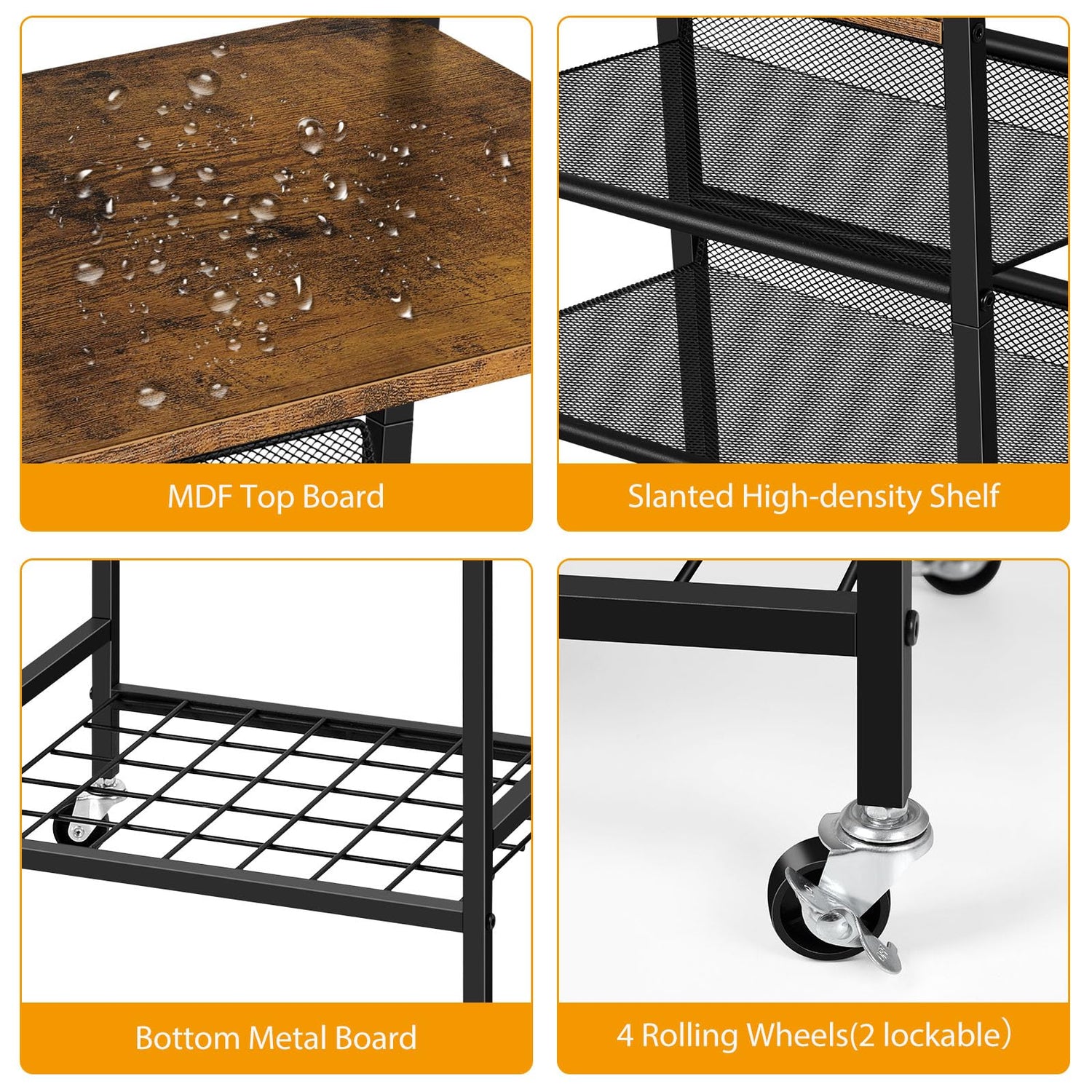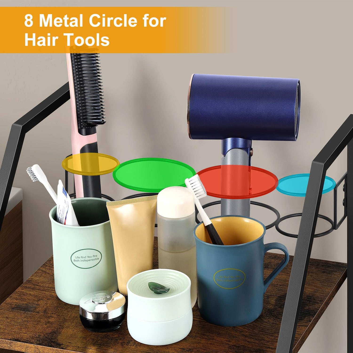 OYEAL Bathroom Storage Cart with Wheels Rolling Bathroom Shelves Slim Freestanding Bathroom Towel Storage Organizer with Hair Tool Holder for Small Spaces, Rustic Brown