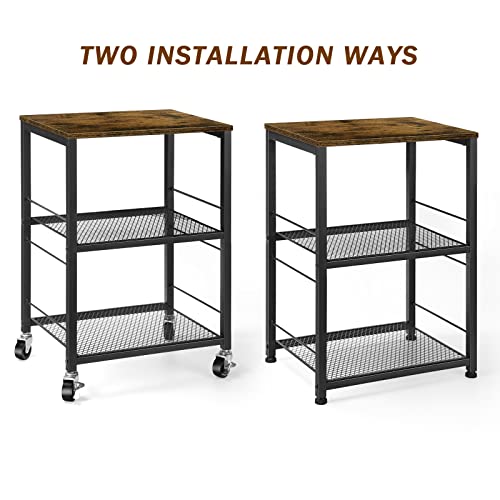 - 💎【INDUSTRIAL SIDE TABLE】Rustic brown wooden tabletop is complemented by the 2 tier black mesh shelves of the side table, adding a unique personality and creating a simple yet vintage style for your room. It's suitable for various home decor styles.