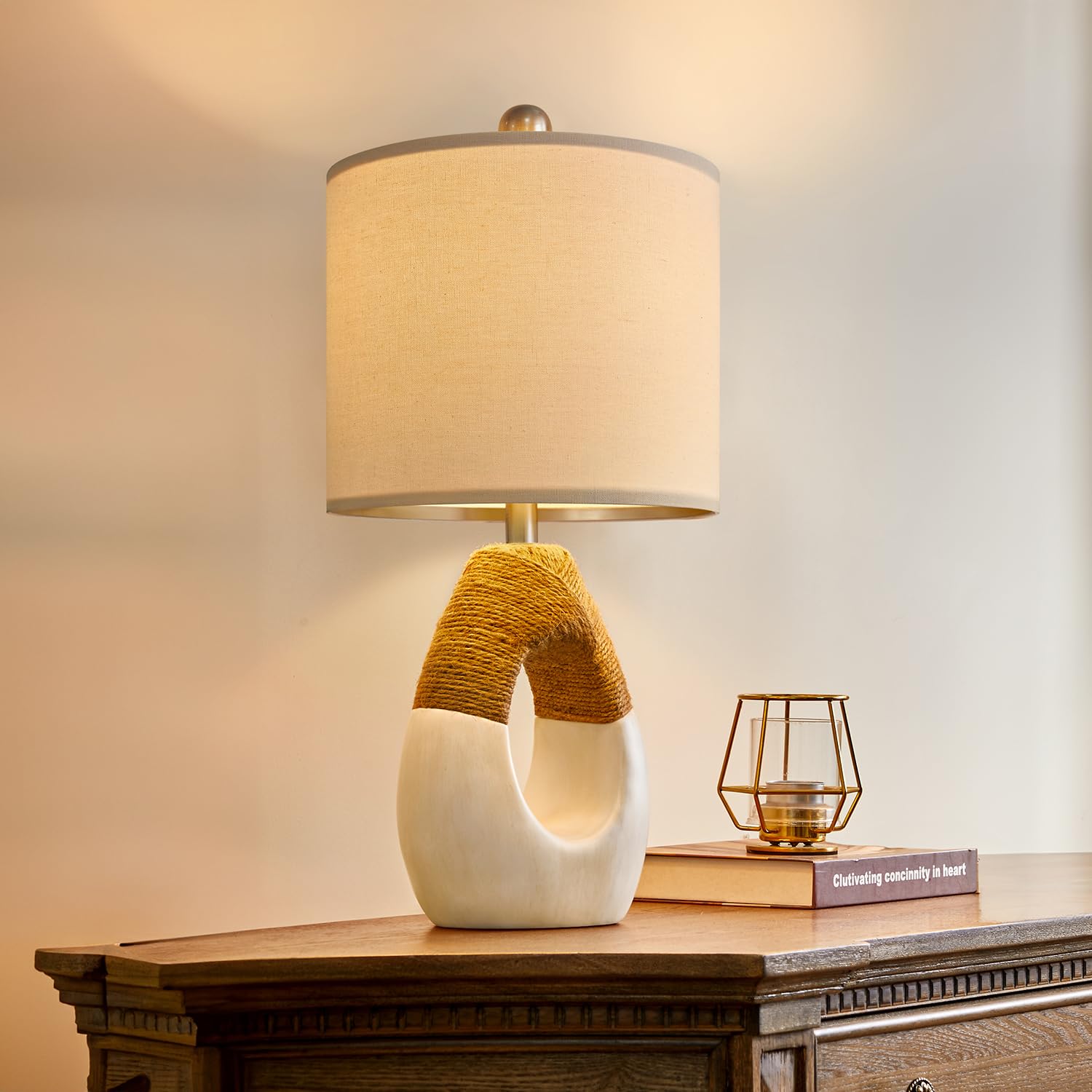 - Unique Farmhouse Table Lamps:Unique design, classical without loss of modernity, The modern bedside lamps was designed as an egg shape with hollow middle that you could carry it easily, the upper part of cotton and linen allowing you to hold it firmly, for you need light well in many place. Our nightstand lamp especially suitable as your work lamps, reading light for your bedside table and nightstand, or as an deco light on top of end tables in your living room.