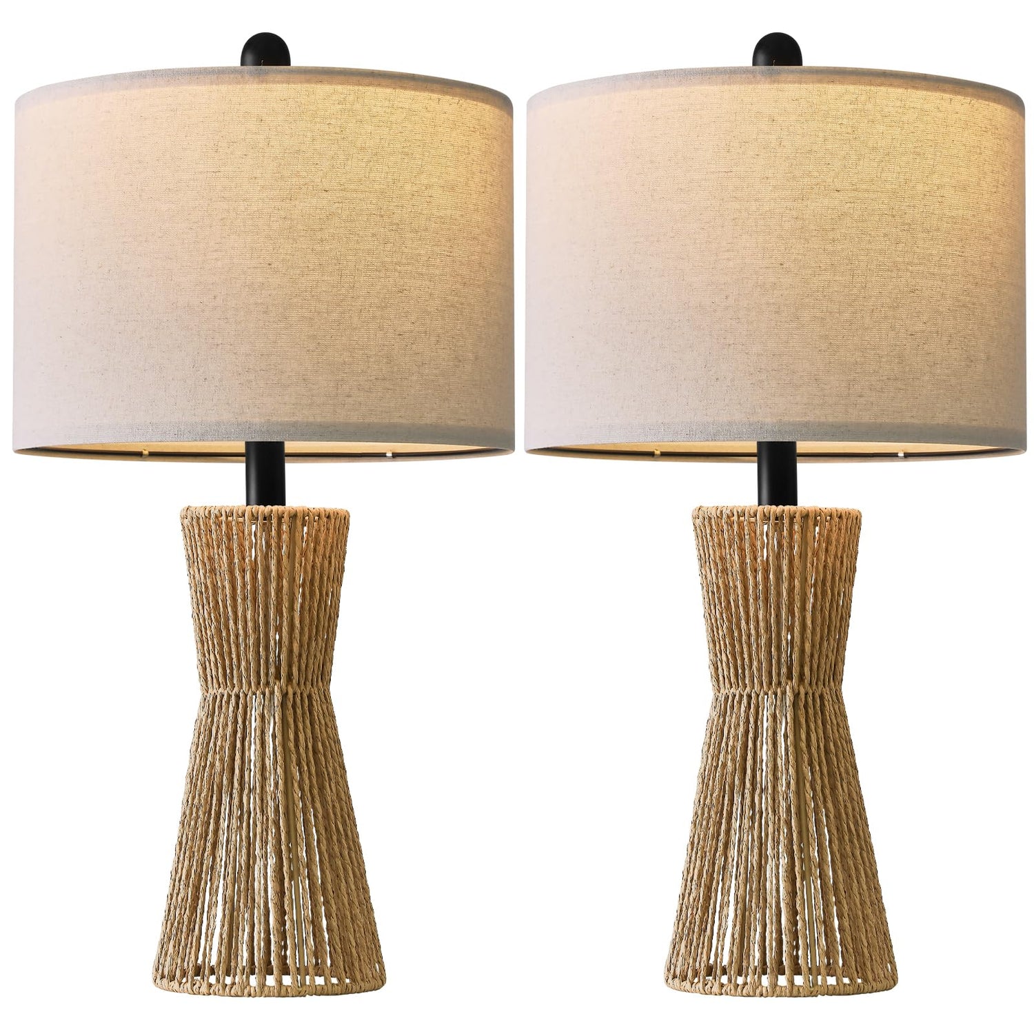 - Boho Style Table Lamp:The lamp base of this boho nightstand lamp is woven by experienced workers to bring bohemian style to your home decor. This living room lamp with fabric shade can be placed in any room and is only 22.5 inches high, perfect for living room, bedroom, office, dormitory and more