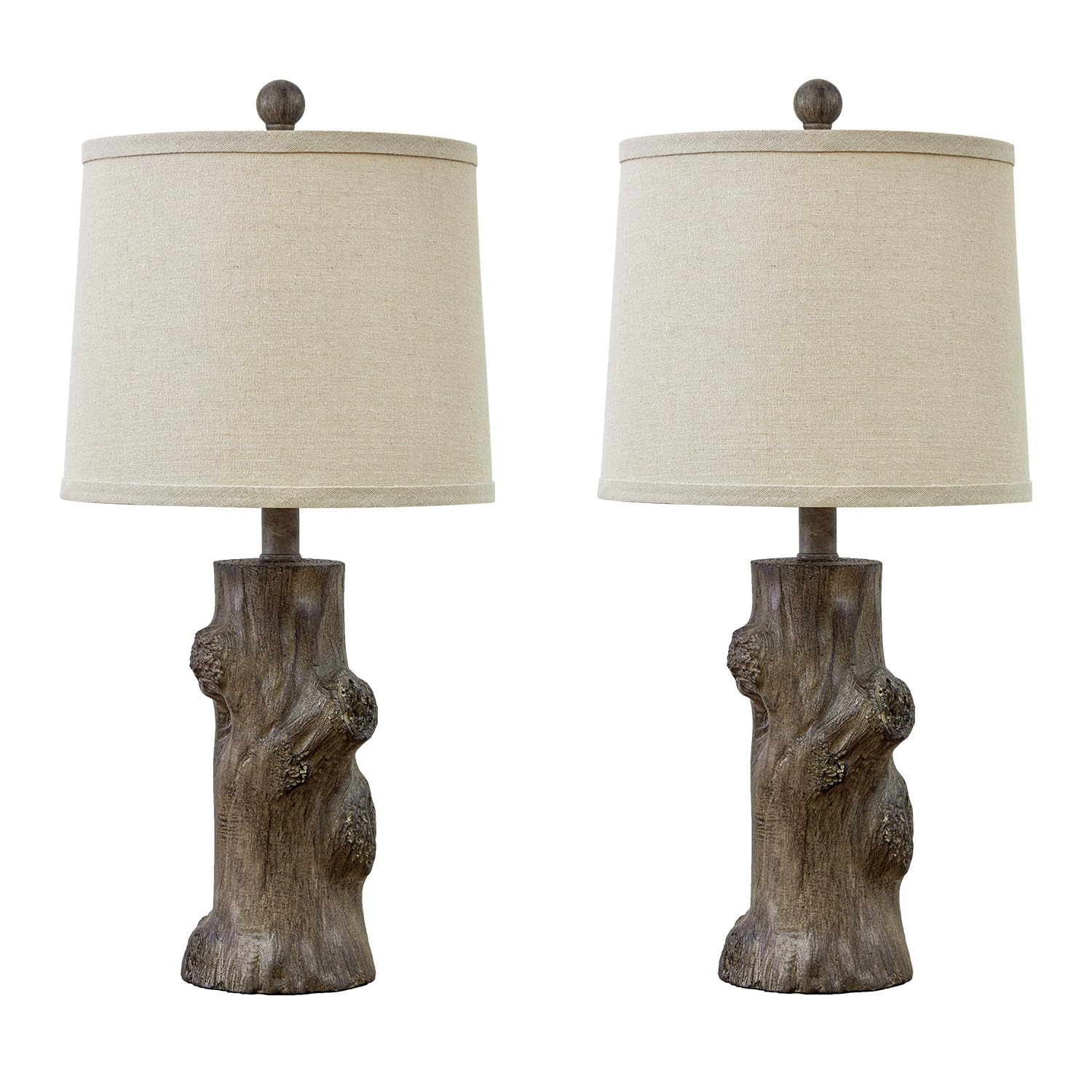OYEARS 23"Resin Table Lamps for Living Room Set of 2 Country Cottage Farmhouse Lamp for Bedroom Tree Trunk Wood Grain with Oatmeal Fabric Round Shade Vintage Rustic Traditional Nightstand Bedside Lamp
