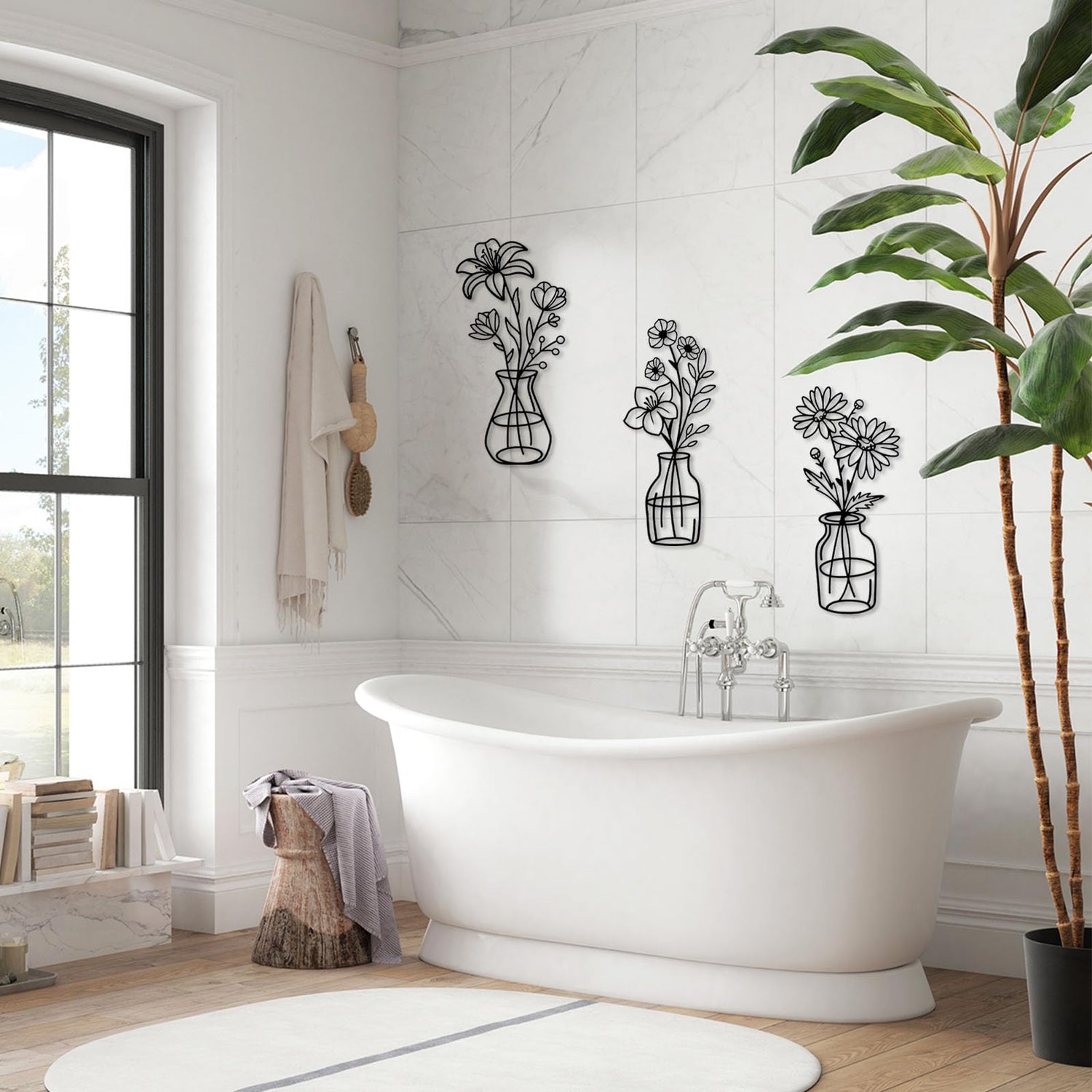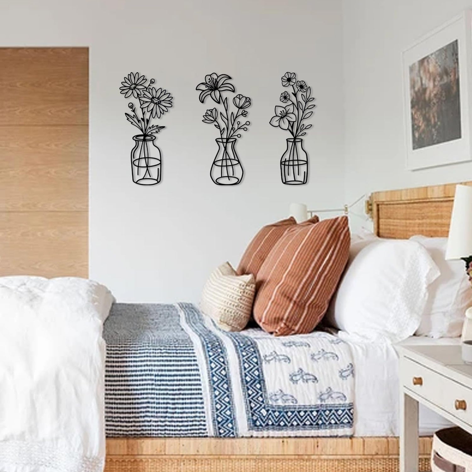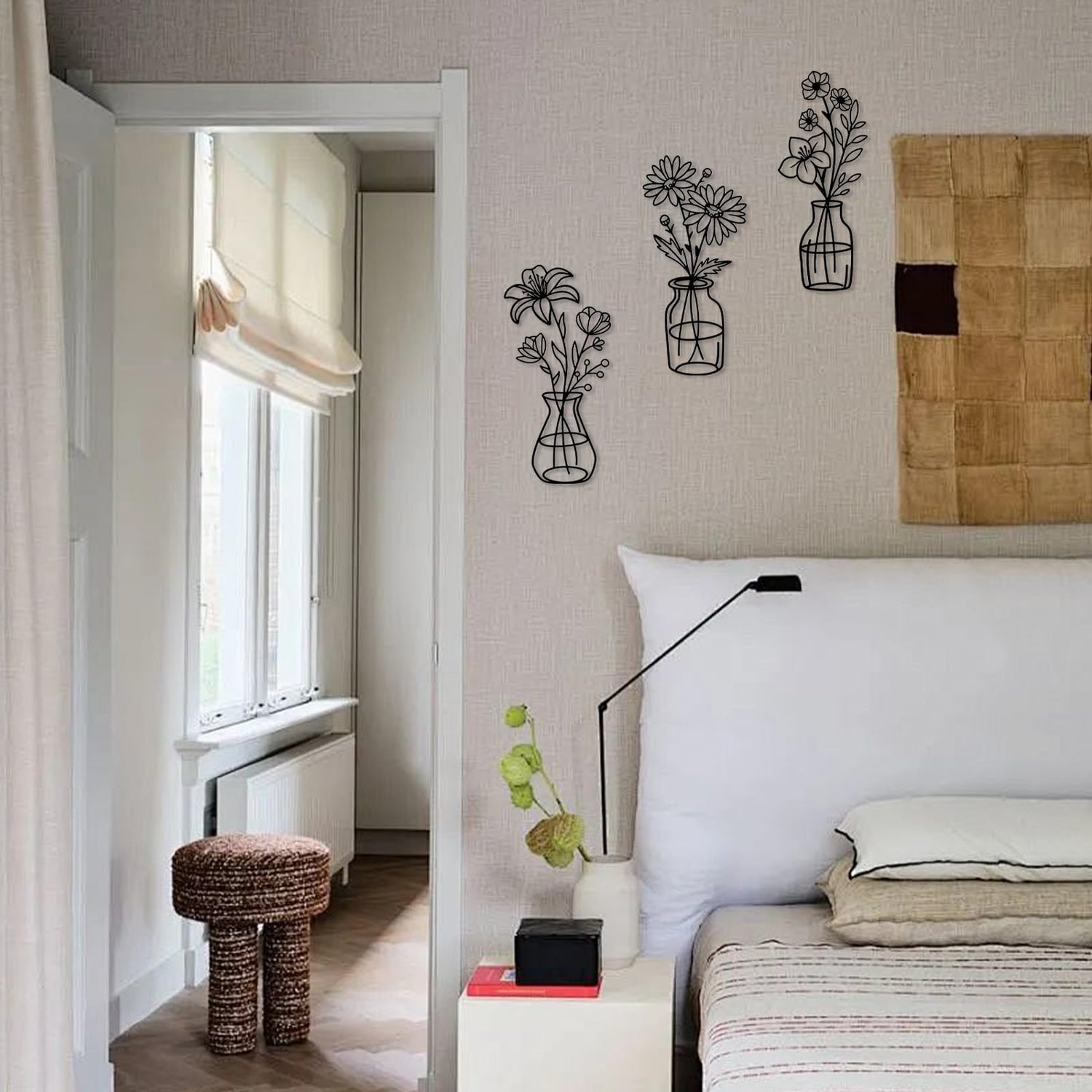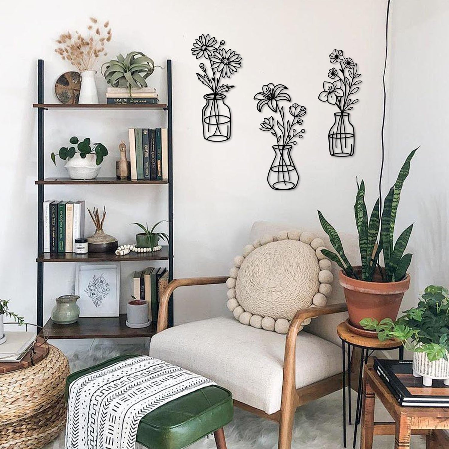 OYEFLY 3 Pieces Metal Flowers Wall Arts,Black Metal Vase Wall Art,Rustic Farmhouse Decor (Black)