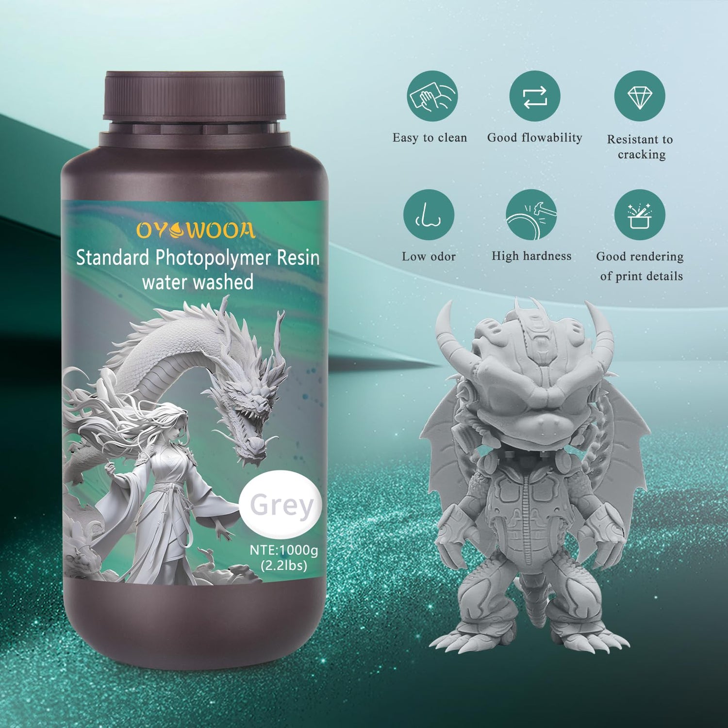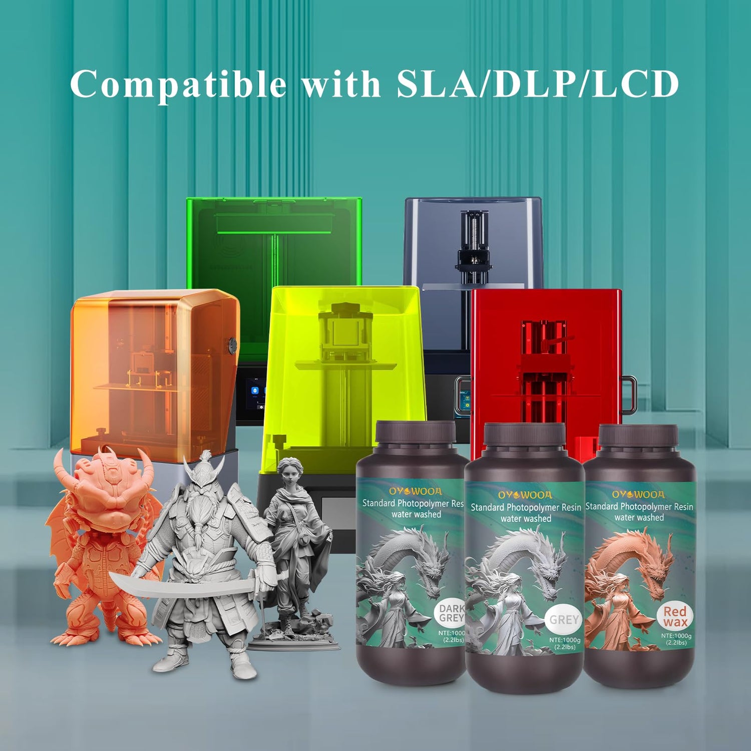 - High Compatibility: Our professional research and testing team has extensively tested and optimized the performance of our 3D Printer resins on various brands of printers to ensure excellent compatibility and ease of use.OYOWOOA's standard 3D printer resins Water Washable are highly compatible with the majority of SLA/LCD and DLP 3D printers, so no matter if you're a beginner or an experienced user, our 3D printing resins will provide you with the perfect solution for your 3D printing needs. Whether you're a beginner or an experienced user, our 3D printing resins provide a seamless printing experience and excellent results