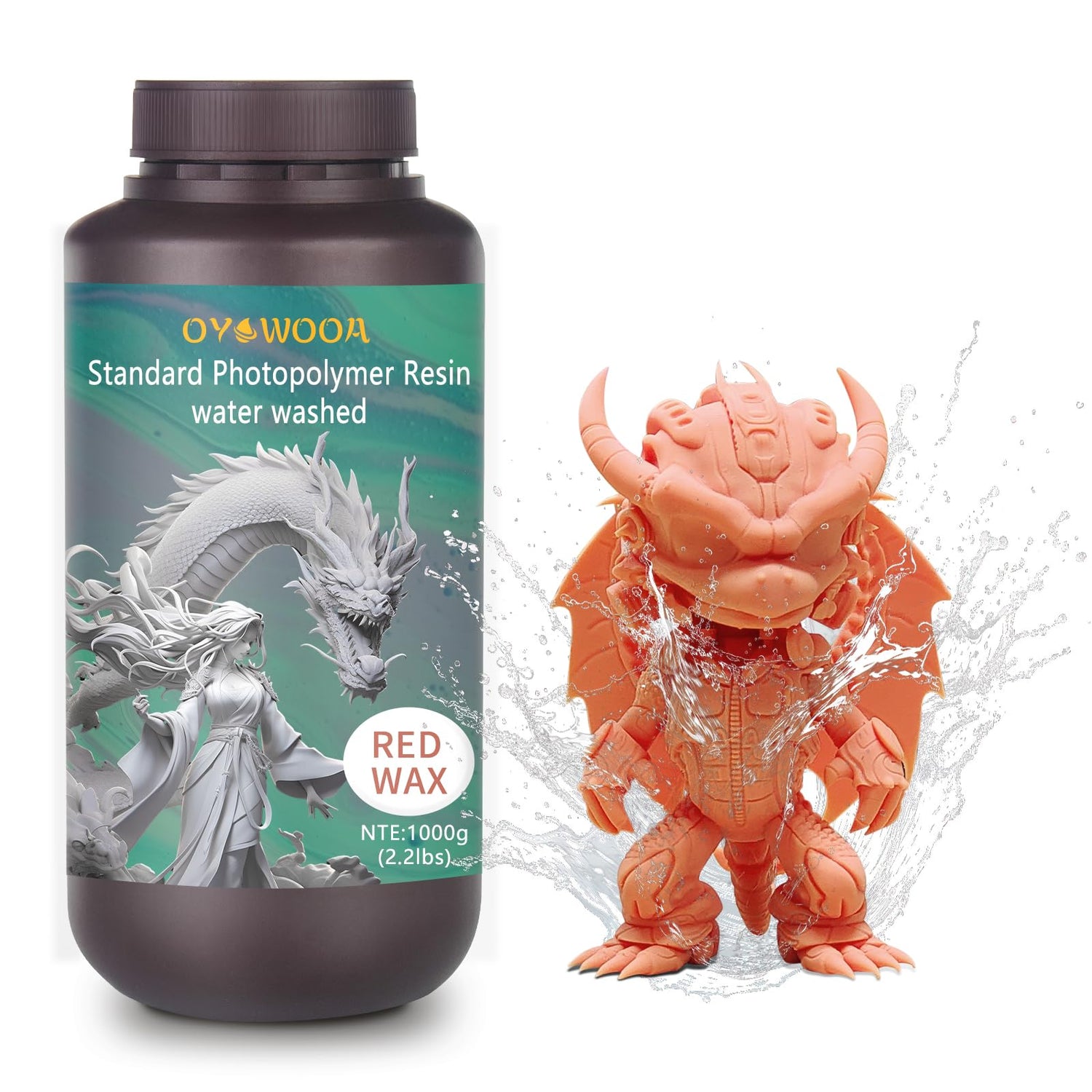 OYOWOOA 3D Printer Resin Water Washable High Precision 3D Printing Liquid 405nm Photopolymer Resin for LCD/DLP 3D Print (Red Wax, 1000g)