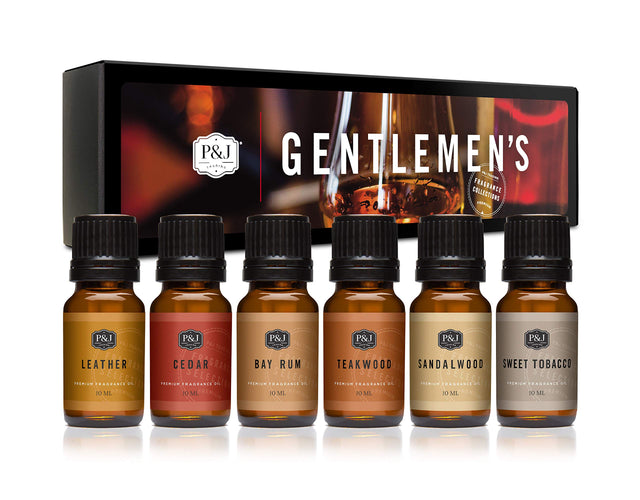 P&J Fragrance Oil Gentlemen's Set | Leather, Sweet Tobacco, Teakwood, Bay Rum, Cedar, Sandalwood Candle Scents for Candle Making, Freshie Scents,