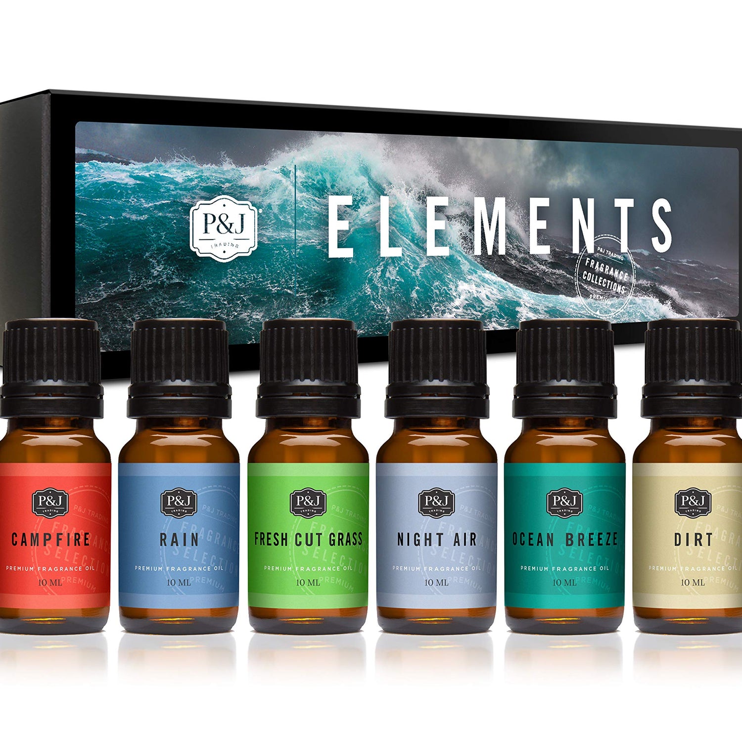 P&J Trading Fragrance Oil Elements Set | Campfire, Night Air, Ocean Breeze, Dirt, Rain, Fresh Cut Grass Candle Scents for Candle Making, Freshie Scents, Soap Making Supplies