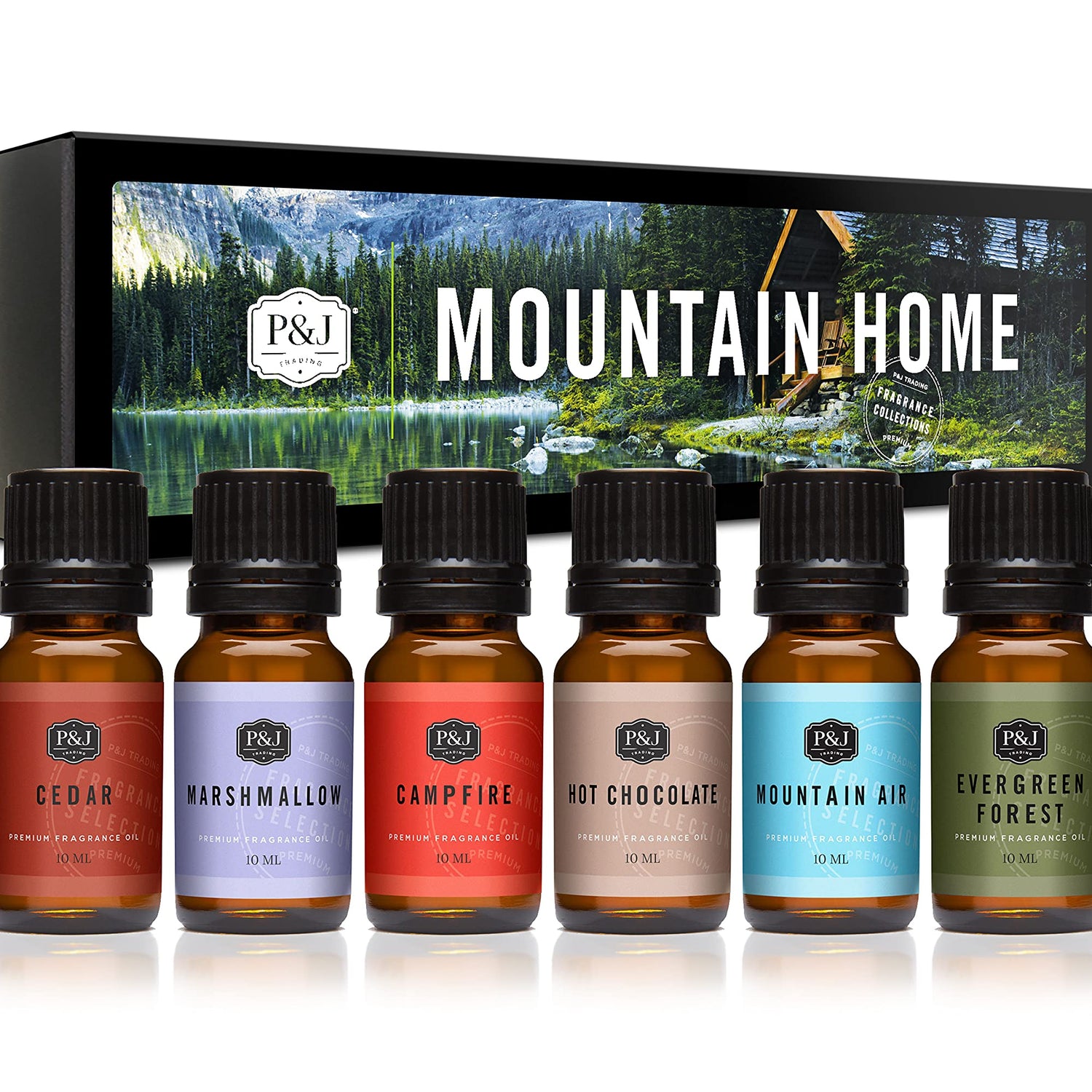 P&J Trading Fragrance Oil Mountain Home Set | Cedar, Marshmallow, Campfire, Hot Chocolate, Mountain Air, Evergreen Forest Candle Scents for Candle Making, Freshie Scents, Soap Making Supplies