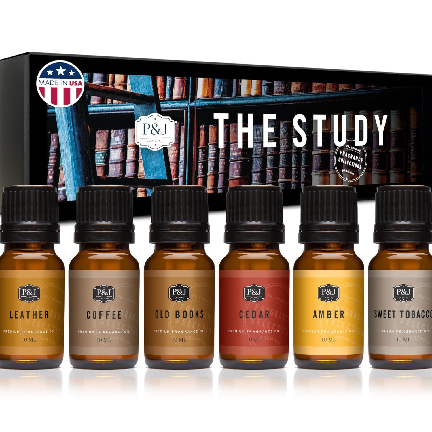 P&J Trading Fragrance Oil The Study Set | Leather, Coffee, Old Books, Cedar, Amber, Sweet Tobacco Candle Scents for Candle Making, Freshie Scents, Soap Making Supplies, Diffuser Oil Scents