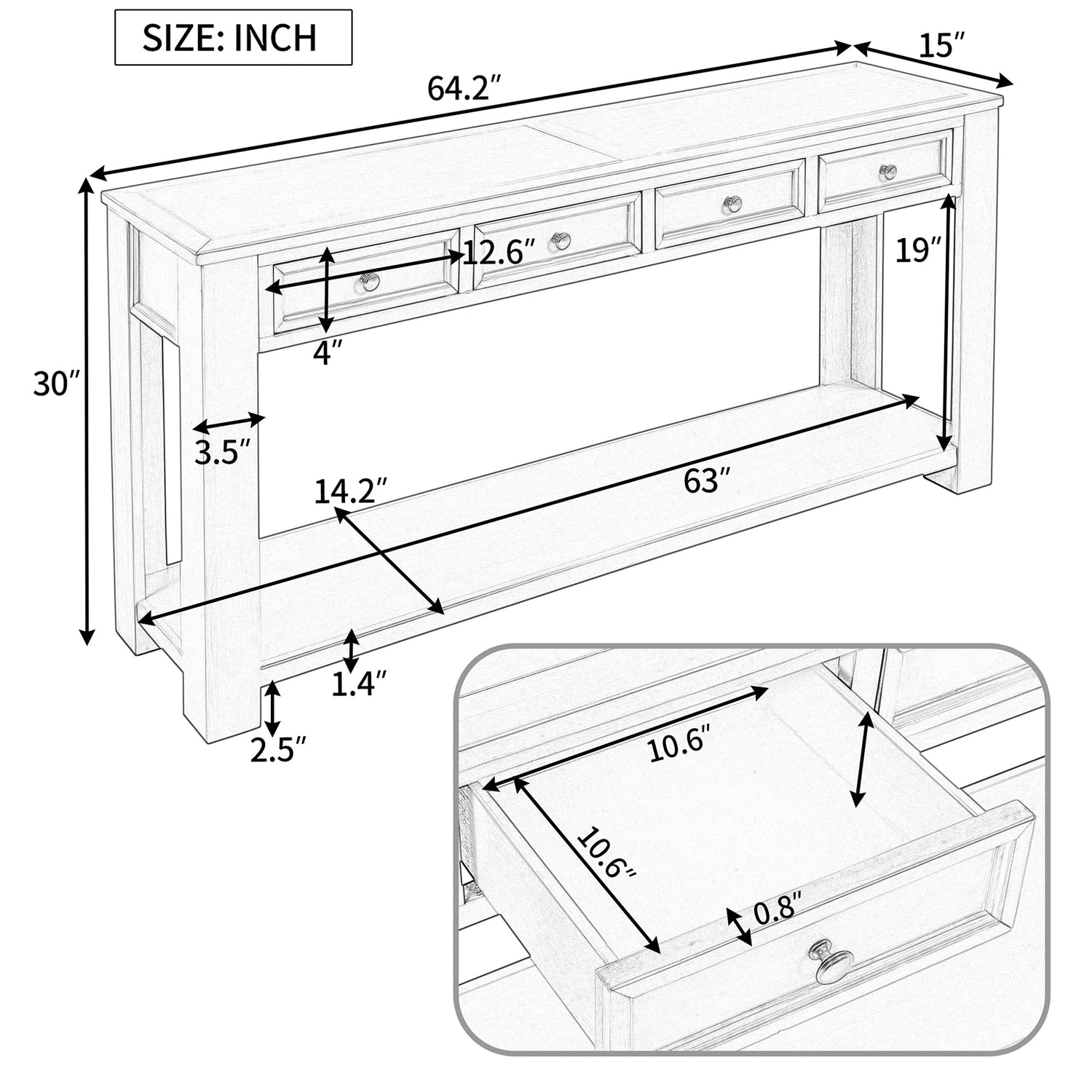 - ❤LARGE STORAGE SPACE: Dimensions: 63"L× 14"W× 30"H. The console table features with 4 drawers and a fixed lower shelf and long enough tabletop which provide enough storage space.