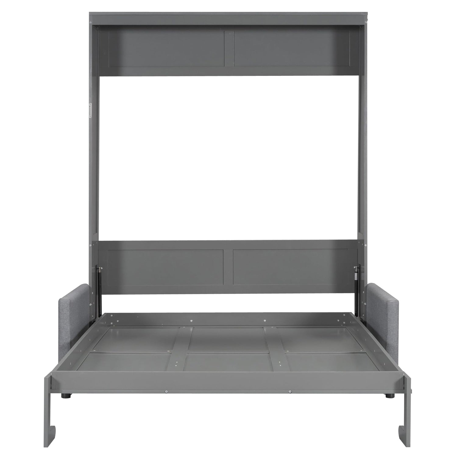 P PURLOVE Queen Wood Murphy Bed with Sofa, Wall Bed Without Slats, No Box Spring Needed (Gray)